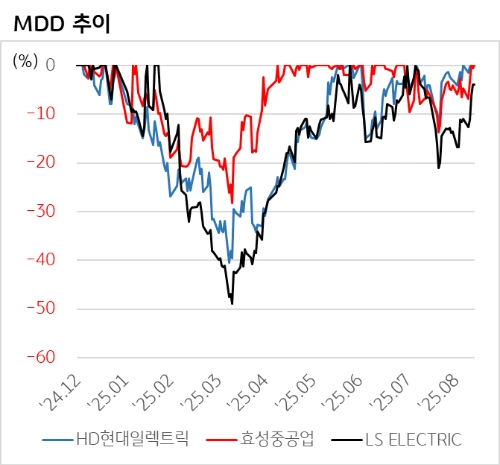 · HD현대일렉트릭 : MDD 약 40%대, 수익률 +56%