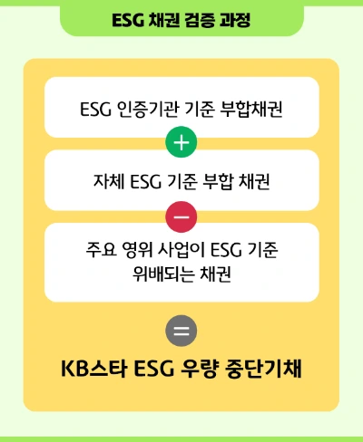 KB스타 ESG 우량 중단기채 펀드는 엄격한 검증 절차를 거쳐 투자 대상을 선별합니다.