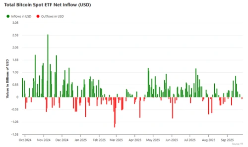 위 차트는 비트코인 ETF의 유출입 현황을 보여줍니다.