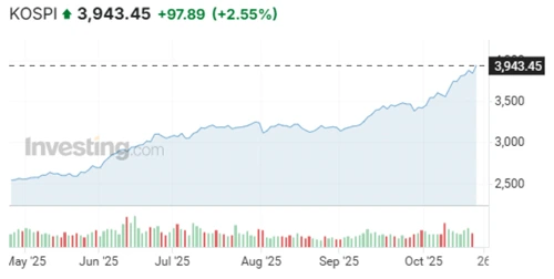 KOSPI는 사상최고치를 갱신하고 금값은 꾸준히 상승했지만, 채권금리는 상승했고 WTI는 낮은 수준을 유지하고 있습니다.