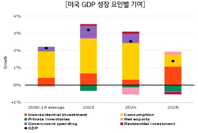 미국에서는 AI 관련 설비투자(CAPEX)가 GDP 성장률을 끌어올리는 핵심 동력으로 작용 중입니다.