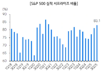 전체의 약 83%가 ‘어닝 서프라이즈’를 기록했습니다.