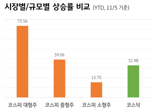 ◆ 하지만 대형주 쏠림이 심화되면서 중소형주는 상대적으로 소외되었죠.