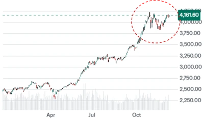11월4일, 장중 4,226pt까지 치솟으며 사상 최고치를 경신한 이후 3,800pt까지 조정을 받기도 했지만, 12월 들어서는 다시 4,100pt를 회복하는 등 저력을 보여주고 있습니다.