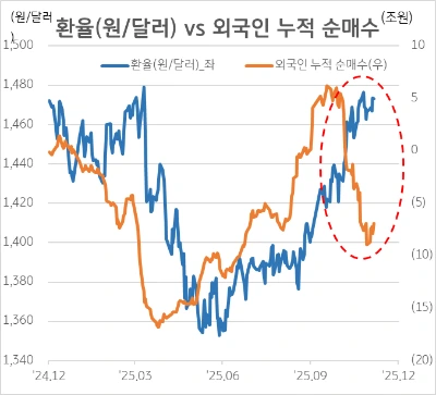 ◆ 환율 급등과 금리 불확실성 속에서도 외국인 수급은 일정한 패턴을 반복해왔으며, 최근에는 환율ㆍ금리ㆍ기업이익 측면에서 다시 한국 증시로 돌아올 명분이 점차 형성되고 있습니다.