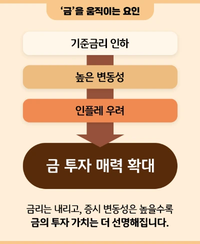 기준금리 인하 기대, 시장 변동성 확대, 물가 불확실성은 모두 금 수요를 높이는 핵심 요인입니다.