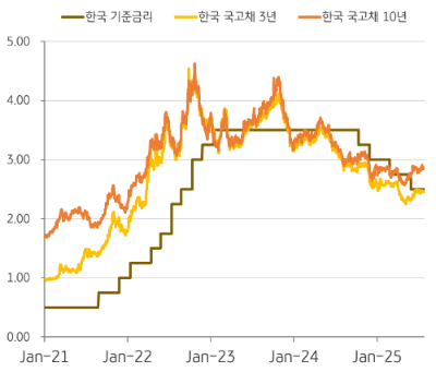 한국 기준금리의 변동과 그에 따른 장단기 국고 시중 금리 변동 추이