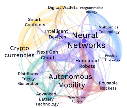 ARK는 보고서 서두에서 AI를 중심으로 혁신 플랫폼들이 서로 얽혀 동시 성장한다고 강조합니다.