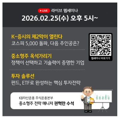 코스피 대형주 중심 투자에서 다음 흐름을 고민하고 계셨다면, 이번 KB자산운용 라이브 웹세미나는 꼭 주목해 보셔야 합니다.