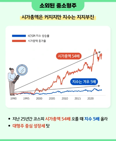결과적으로 중소형주는 시장 전체 성장 대비 상대적으로 소외되는 흐름이 이어졌습니다.
