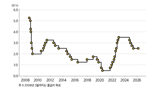 한국은행은 2026년 2월 금통위에서 기준금리를 2.50%로 동결하였고, 새로운 포워드 가이던스 방식을 도입하여 향후 금리방향을 제시하였습니다.