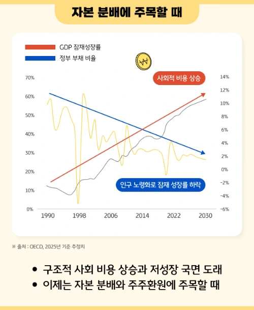 경제가 빠르게 성장하던 시기와 달리 이제는 기업의 이익 성장만으로 높은 수익을 기대하기 어려운 환경이 되었습니다.