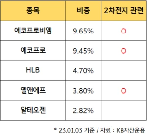 실제 코스닥150 지수를 구성하는 종목 상위 5개 중 3개가 2차전지 관련주이기도 하죠(에코프로비엠, 에코프로, 엘앤에프).
