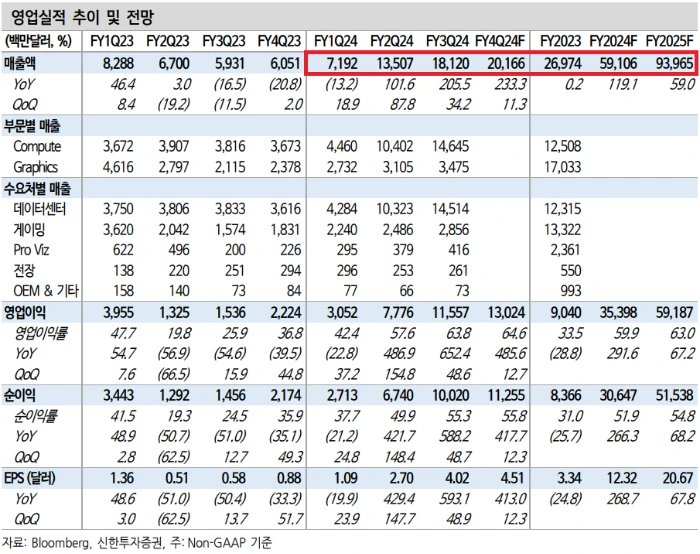 AI 반도체에 대한 수요 증가와 함께 데이터센터 부문의 매출이 드라마틱 하게 증가하면서 전체 수익성(EPS, 주당순이익)이 개선되는 결과가 나타났습니다. 그뿐만 아니라 앞으로 2년 동안 더더욱 큰 매출 상승이 일어날 것으로 예측되고 있죠.