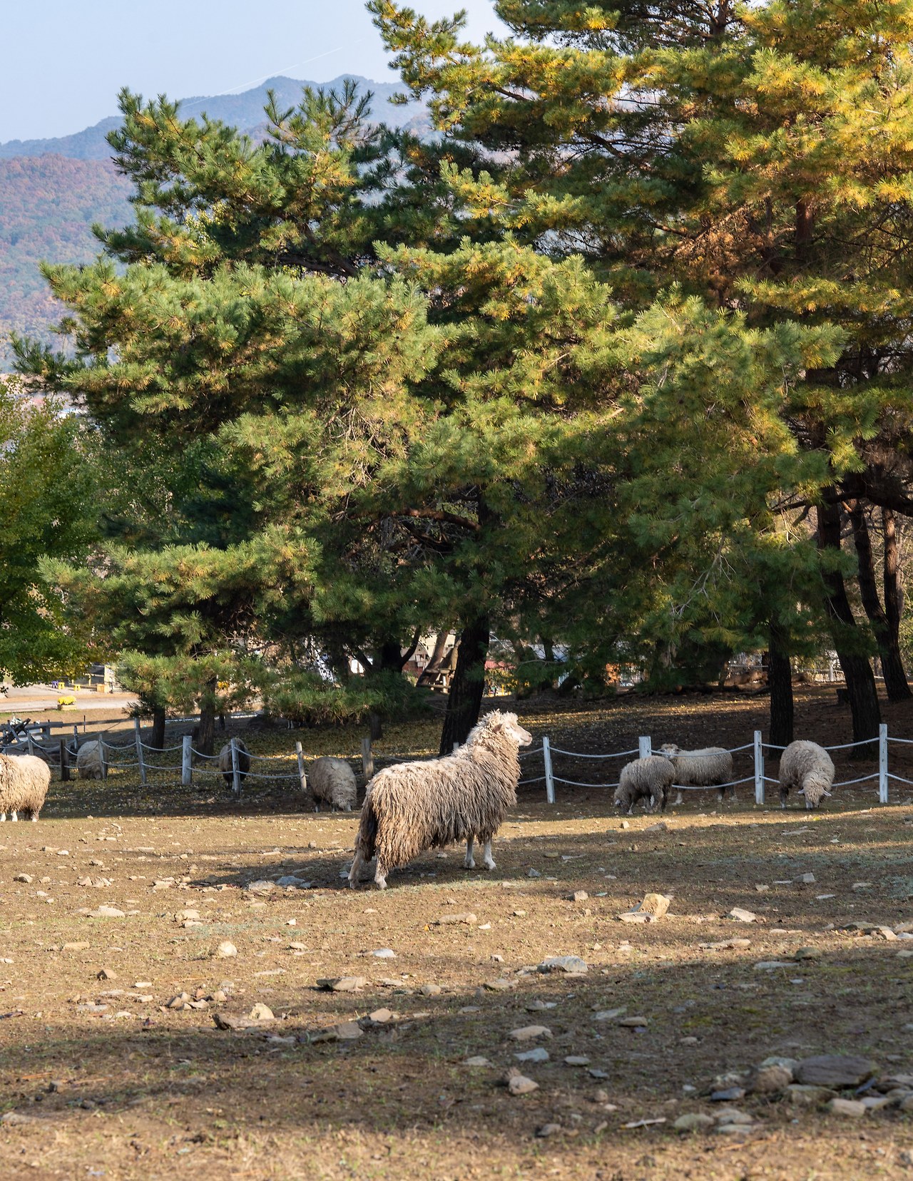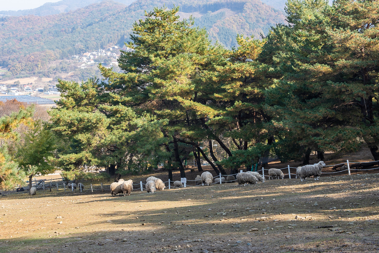 매표소를 지나 언덕길을 오르니, 이곳의 주인인 동물들이 한가롭게 풀을 뜯고 있는 모습이 보였습니다. 커다란 한우들, 복슬복슬한 양 떼, 그리고 토끼와 염소들까지.