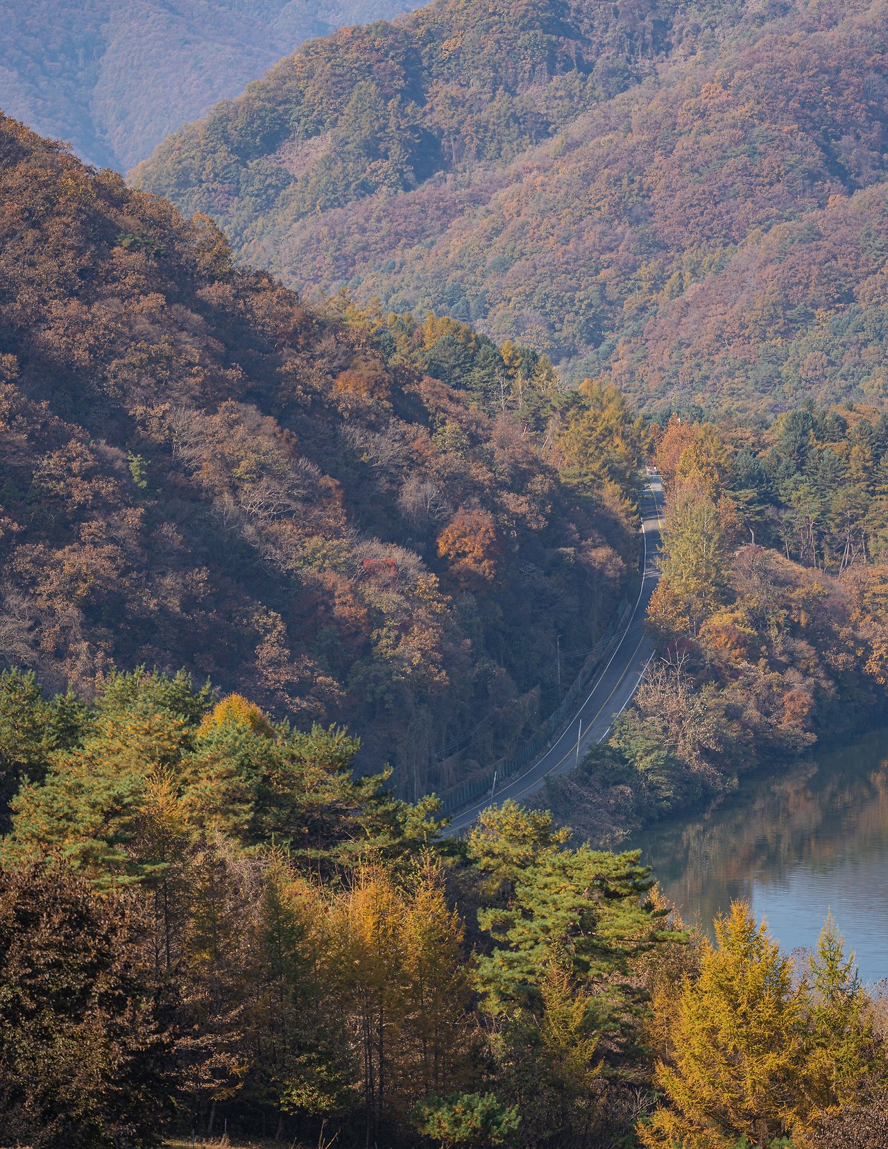 도시의 소란스러움을 뒤로하고, 점점 깊어지는 산자락을 따라 들어가니, 공기는 더욱 맑고 상쾌해졌습니다. 창밖으로 스치는 붉고 노란 단풍잎들이 마치 환영의 손짓을 건네는 듯했습니다.