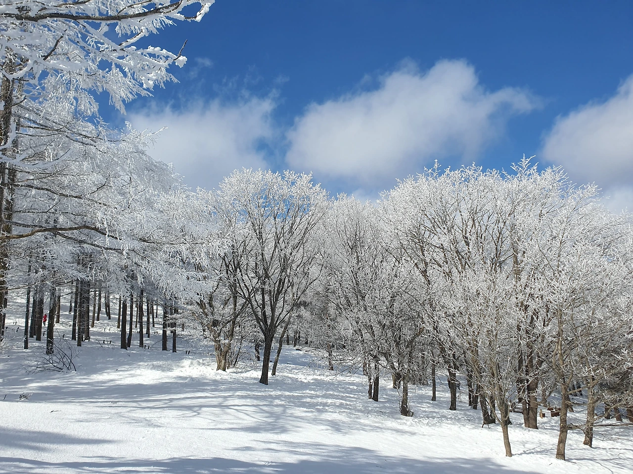 우리나라에서 차로 올라갈 수 있는 가장 높은 곳이라는 만항재는 해발 1330m라고 합니다. 강원도 정선, 태백, 영월의 경계에 걸쳐 있는 함백산 정상이 멀지 않은 곳이지요. 이곳의 순백의 겨울과 큰 키의 나뭇가지에 핀 멋진 상고대를 보고 있자니, 이곳은 저의 상상을 뛰어넘는 설국이었습니다.