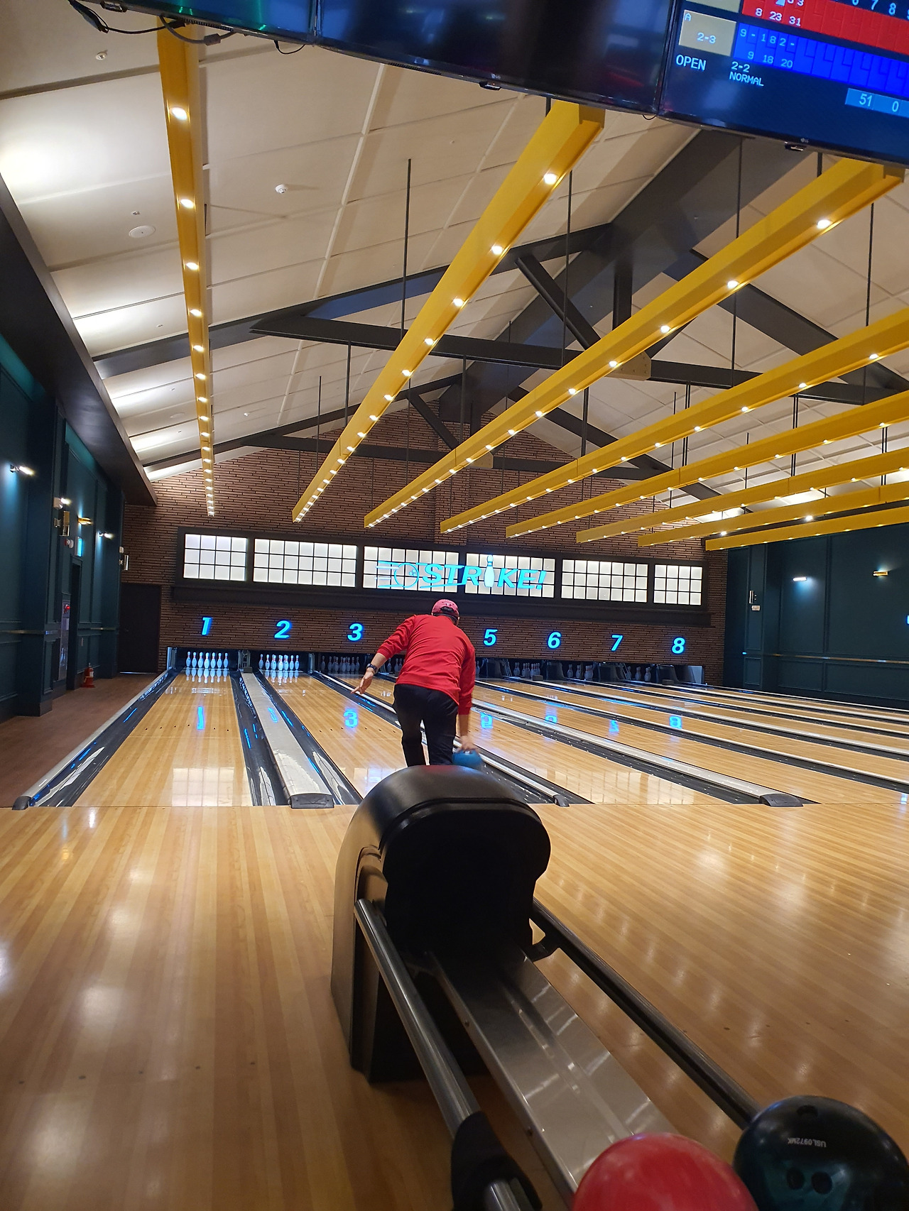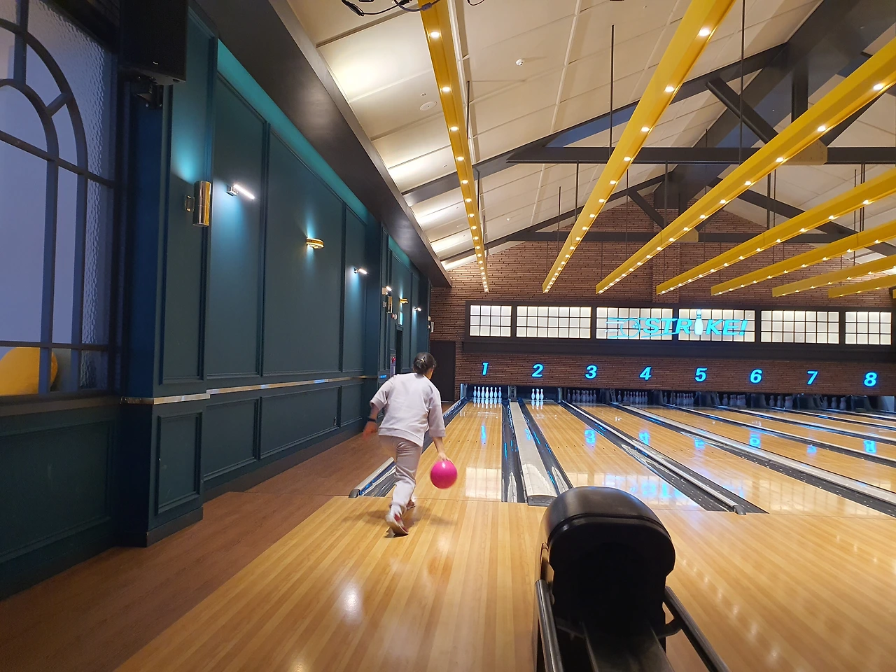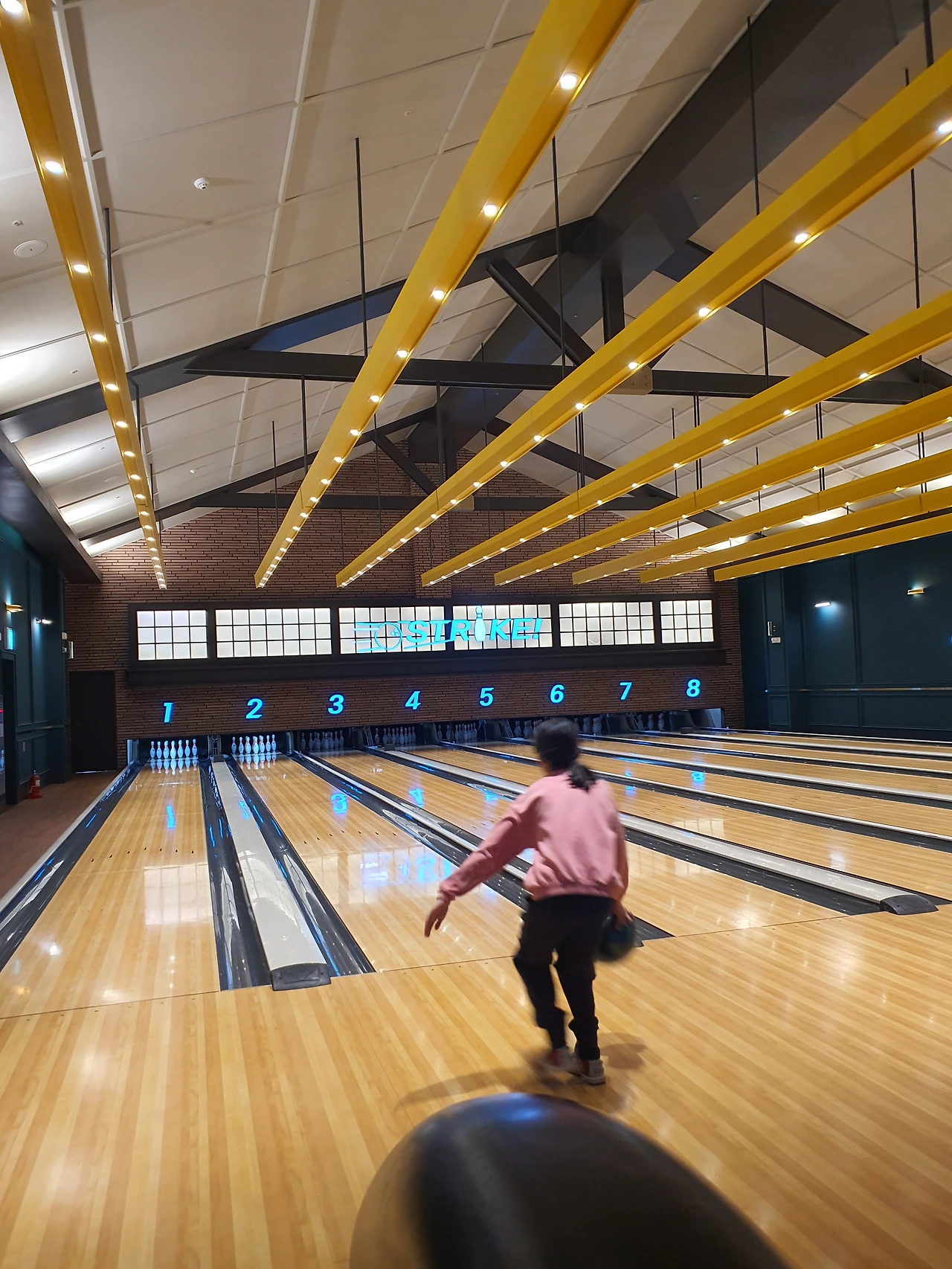 스크린골프와 같은 층에 있는 볼링장에서 아이는 생애 처음으로 볼링을 경험했다. 물론 집에서 닌텐도 Wii sports로는 이미 여러 번 해봤고, 엄마 아빠보다 월등한 실력을 자랑했지만 실제와 게임이 얼마나 다른지 뼈저리게 느꼈을 것이다. 그래도 두 번째 게임에서는 스트라이크도 한 번 하고, 스페어 처리도 몇 번 하는 걸 보니 빠르게 적응해서 게임을 즐기는 모습이 참 신기했다. 볼링장 옆 오락실에서 아빠는 레이싱을 했고, 셋이서 전자 다트와 에어하키, 농구까지 정말 한 번에 할 수 있는 운동경기는 다 했다. 스포츠데이답게!!