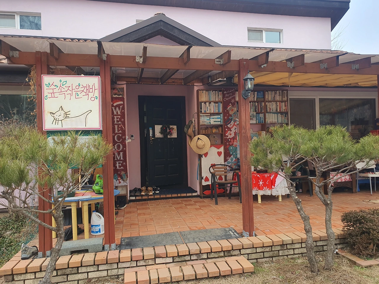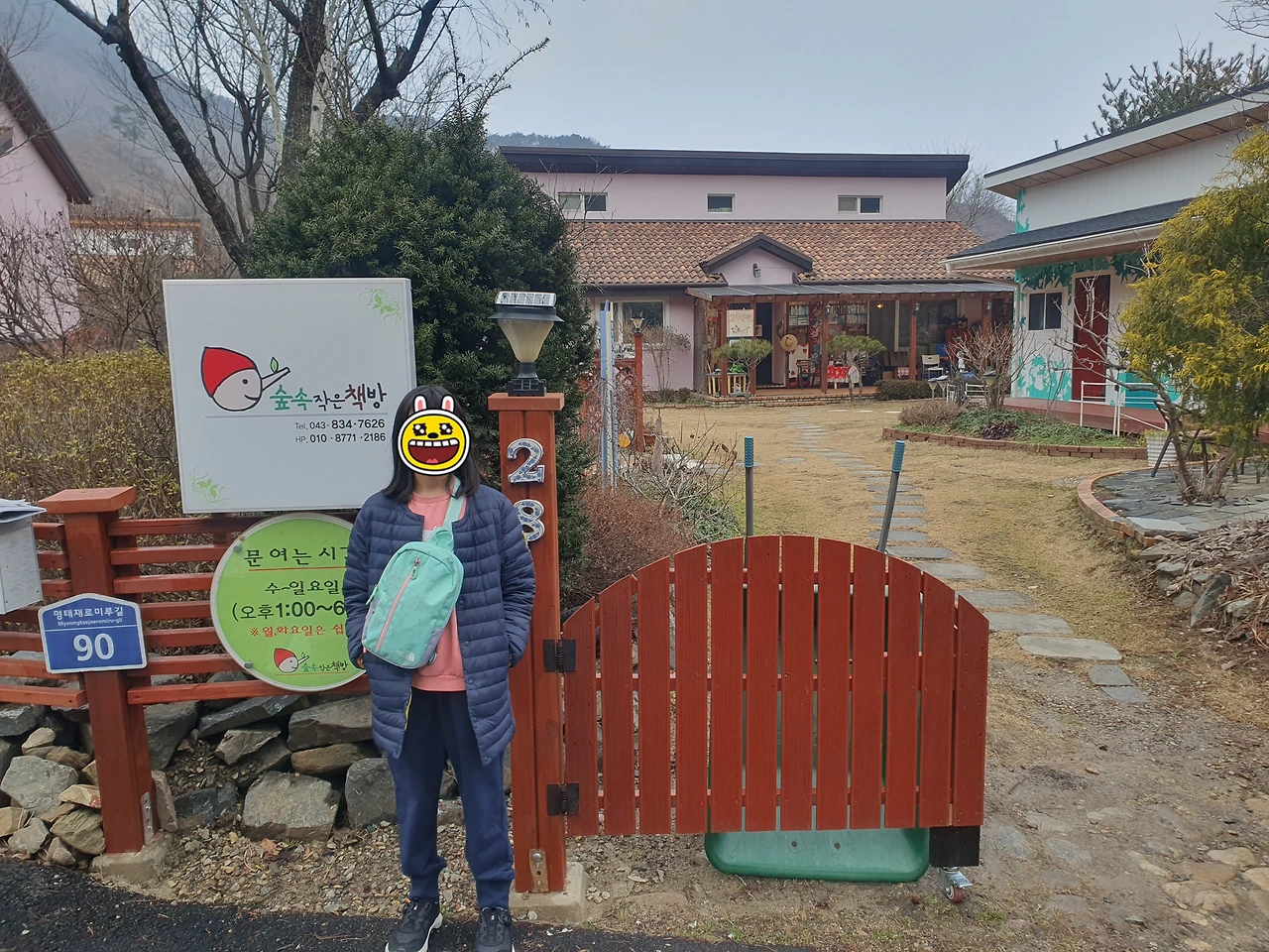 책을 좋아한다고 엄마한테 세뇌를 당한 아이와, 진짜로 책을 좋아하는 내가 괴산에 오면 꼭 가보고 싶은 곳이 있었으니, 그곳은 바로 독립서점인 숲속작은책방이다. 괴산 여행을 하기 며칠 전 지인 가족과 식사를 했는데 지인 부부가 작년에 갔었는데 정말 좋았다며 강추해서 내가 지도에 저장해 놓은 곳으로, 작은 마을 안에 있는 2층 집을 개조해서 만든 책방은 초등학생들이 단체로 견학을 오기도 하는 나름 유명한 서점이었다. 이곳은 북스테이도 겸하고 있었는데, 마침 우리가 갔을 때 체크인 시간이라 그날 북스테이 하러 온 분들이 설명을 듣는 모습을 직접 볼 수 있었다. 그 광경을 부럼움의 눈으로 쳐다보던 아이는 다음에 꼭 1박을 하러 오자며 나에게 약속을 받아냈다.