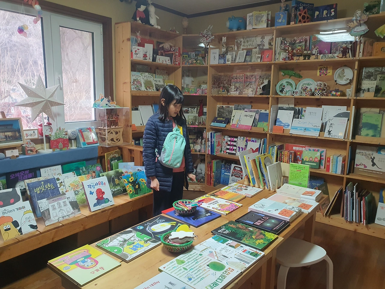 책을 몇 권 사주기로 하고 시간을 주었는데 아이는 사고 싶은 책이 너무 많다며 들었다 놨다를 반복하다가 결국은 도서관에서 빌려본 적 있는 꼭 갖고 싶은 책들을 골랐다. 다음에 직접 쓴 책을 들고 오기로 하고, 서점 주인께 노트와 책 담는 가방까지 선물 받은 아이는 입이 귀에 걸려 숙소로 돌아가는 차 안에서 열심히 책을 봤다. 이 책들이 다음날 장거리 이동에서도 차 안에서 유튜브를 틀지 않게 하는 효자템이 되었으니, 책방에 들리길 얼마나 잘했는지 모르겠다.