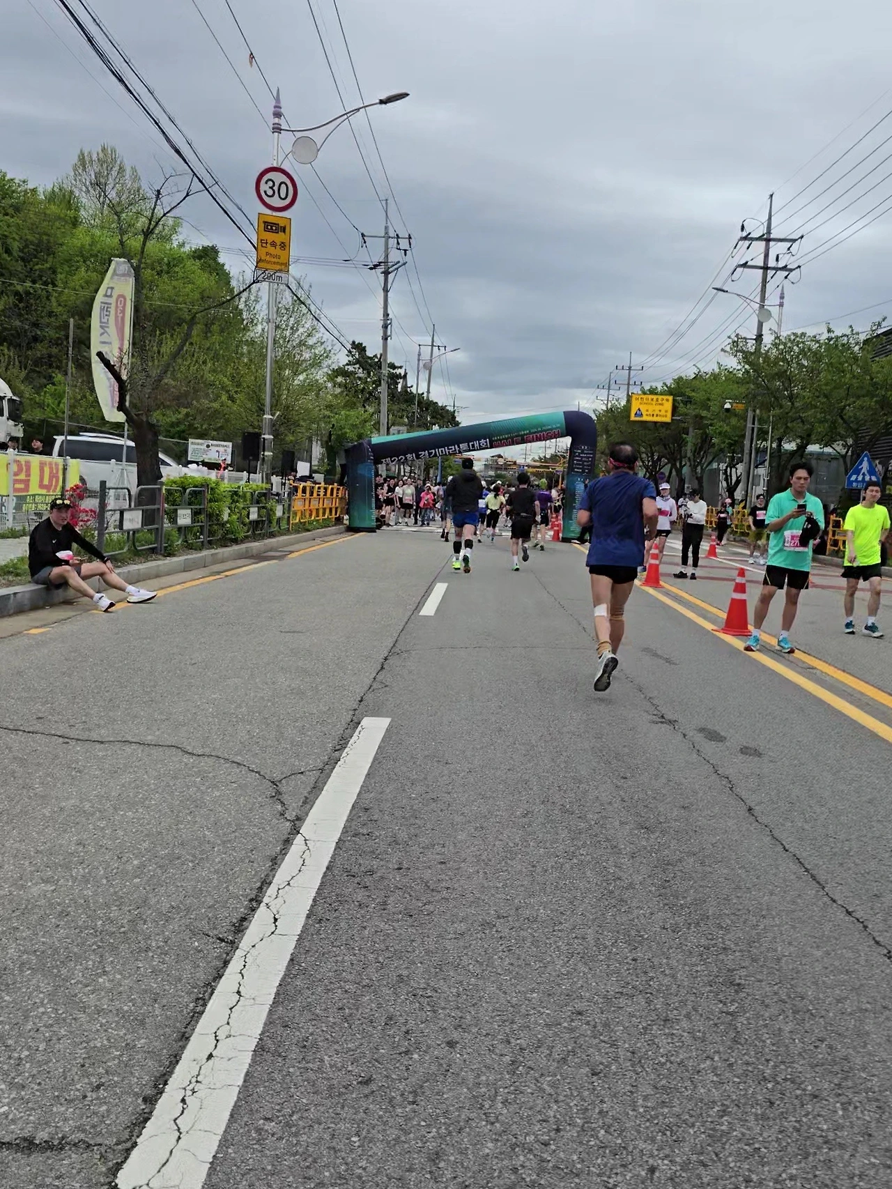 그리고 초반에 오버페이스로 너무 힘들어, 여름날 헥헥 대는 강아지처럼 입 벌리고 헐떡이며 달리고 있었는데 뒤에서 어떤 무리가 함께 달리며, 그중 유경험자로 보이는 사람이 '입으로 숨 쉬지 마'라고 크게 얘기해 주는 게 귀에 들어왔다.