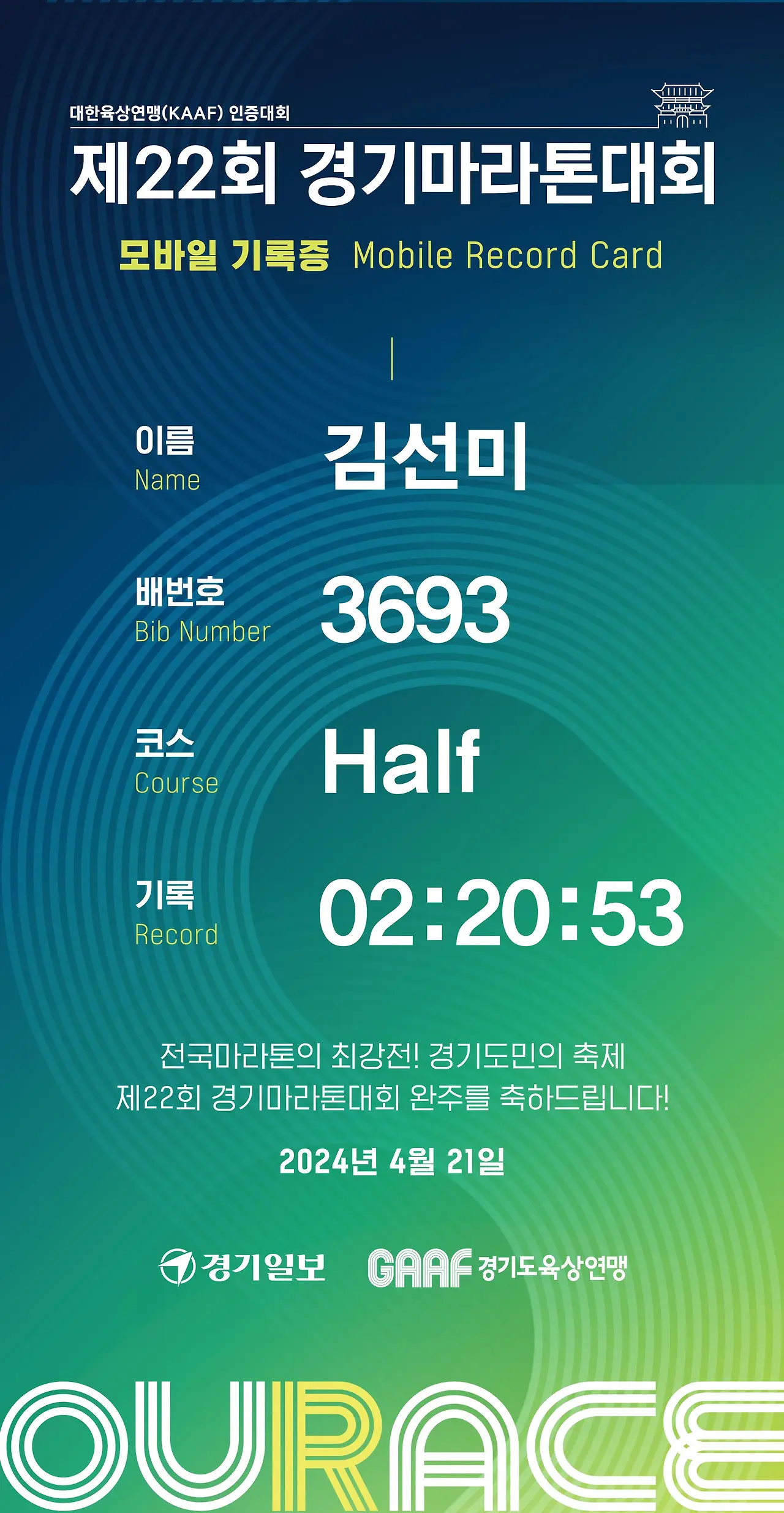 그래서 2022년에 좋은 기억이 있는 22회 경기마라톤대회 하프코스를 신청했다.