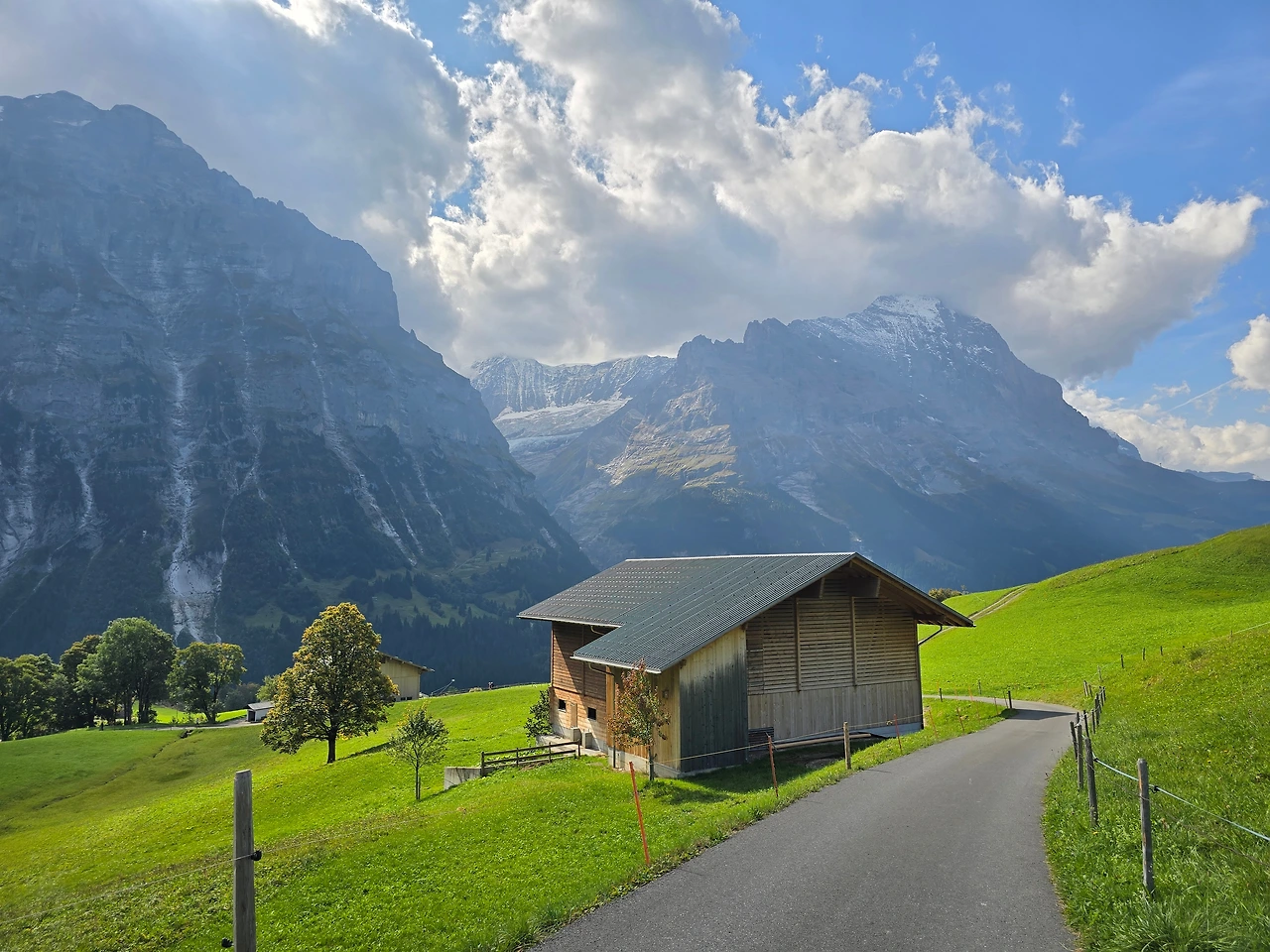 TV로, 동영상으로 보던 그 장대한 산봉우리들과 만년설, 그리고 파란 하늘 아래 푸른 초원, 예쁜 집들과 소들...