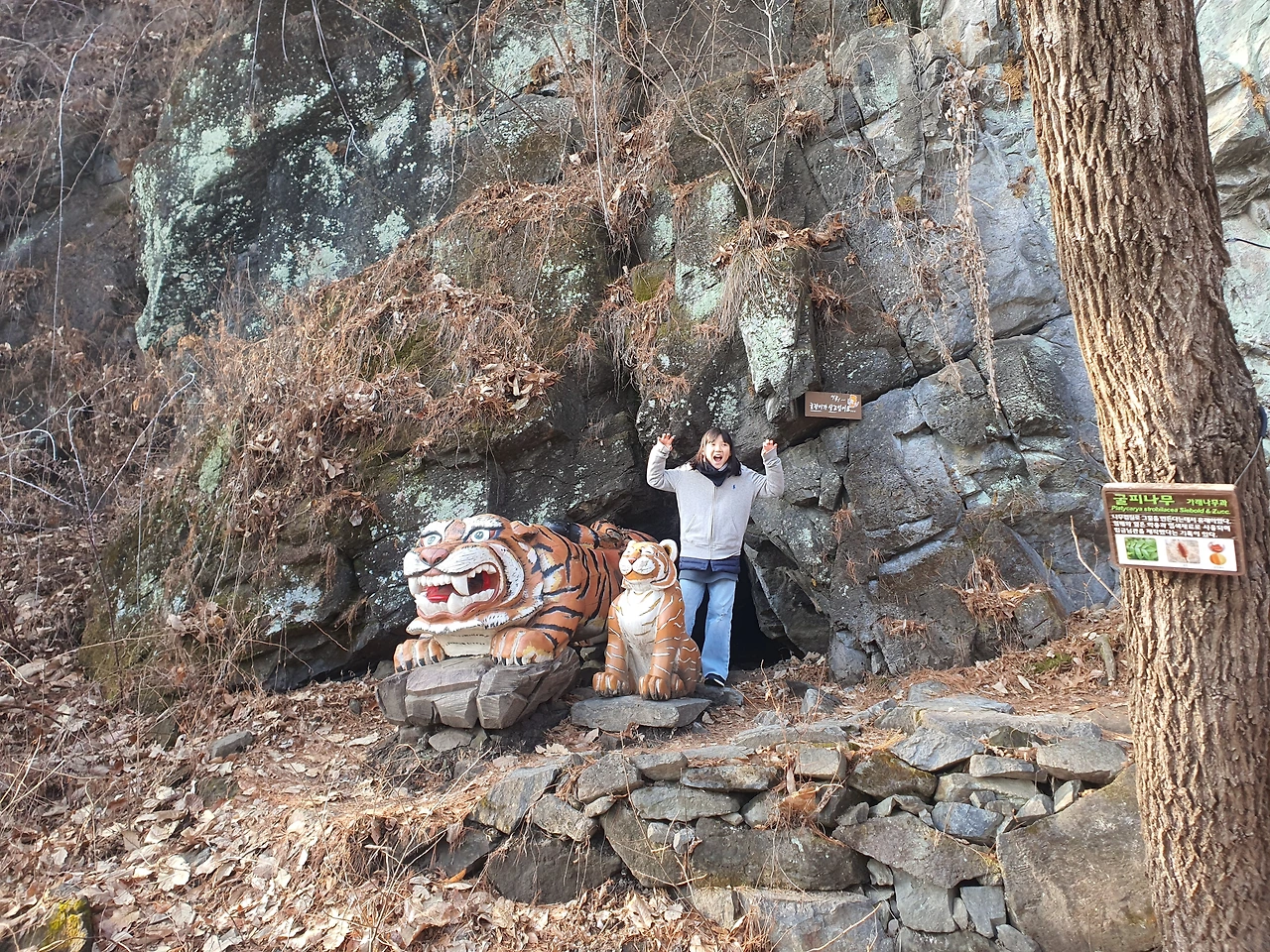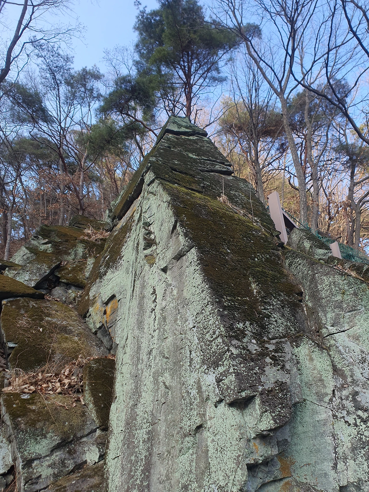 꽤 걸었다 싶은 생각이 들 때쯤, 지도에서 봤던 한반도지형으로 생각되는 경치가 보였고 등산로를 표시하는 입간판이 보였다. 올라가서 정말 한반도 지형처럼 보이는지 사진을 찍어보고 싶은 마음이 굴뚝같았지만, 역시나 남편은 올라갈 생각이 없었다. 그래서 우리 가족은 그냥 앞으로 쭉 걸어갔다.