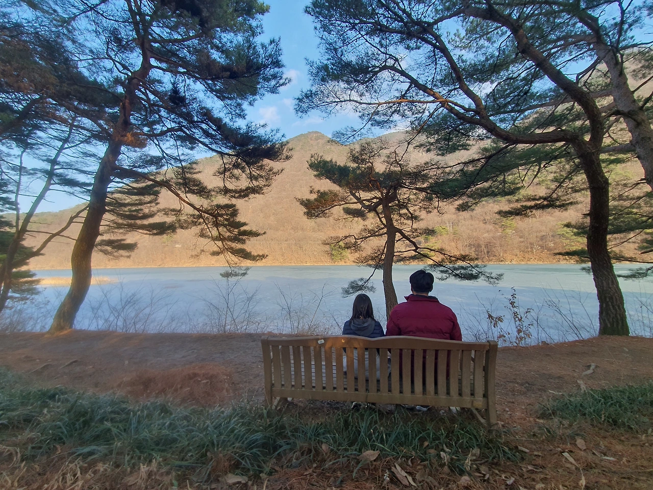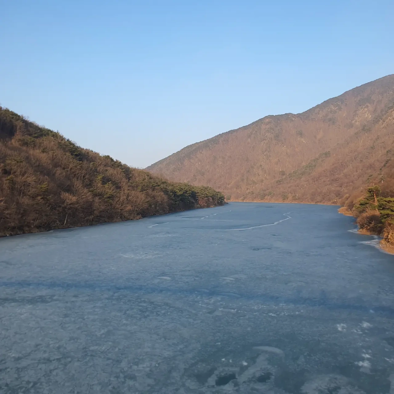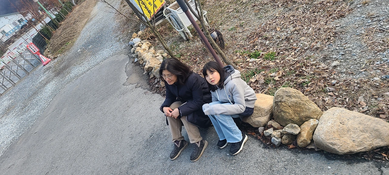 그러나 문제는 여기서 시작되었다. 지금이 한겨울이고, 호수가 얼어서 유람선이 다니지 않는다는 것을 감안하지 않은 치밀하지 못한 도보여행은 우리에게 주차장으로 돌아가는 길이 예삿일이 아니라는 큰 숙제를 남겨주었다. 다시 두 시간 반을 걸어서 돌아가기엔 해가 너무 짧았다. 돌아가는 길 중간쯤에서 캄캄해질 것이 뻔한데, 어두운 숲길을 걷는 것은 하고 싶지 않았다. 앱을 확인하지도 않고 카카오택시를 부르면 되겠지라는 안일한 생각도, 괴산에서는 통하지 않았다.