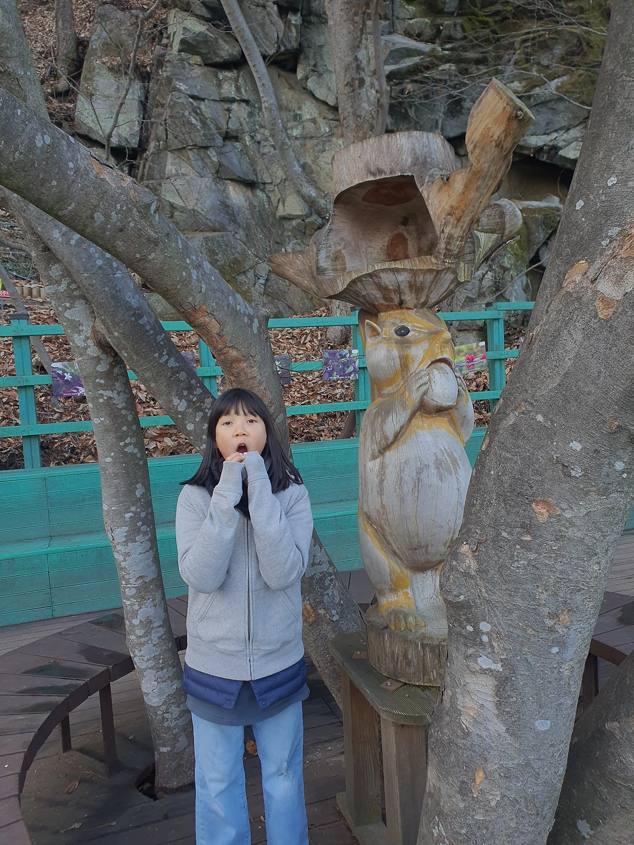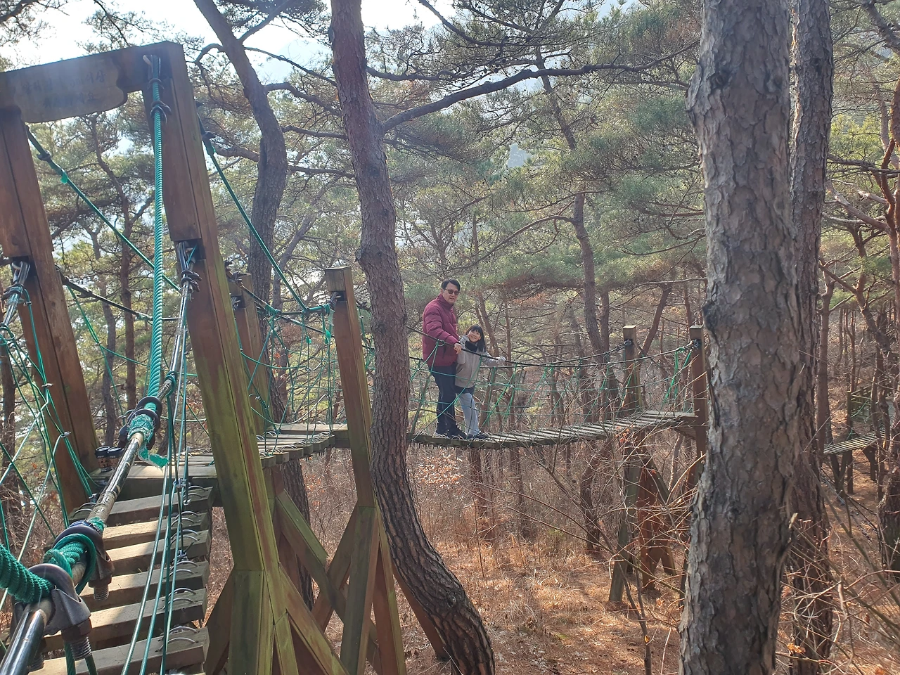 생각보다 스릴 있고, 보기보다 길었던 소나무 출렁다리를 건너며 우린 즐겁게 사진도 찍고 일부러 더 신나게 흔들며 걸어갔다. 딸은 날 닮아 별로 겁이 없어 이런 다리를 만나는 것은 우리 가족에게 즐거운 일이다.