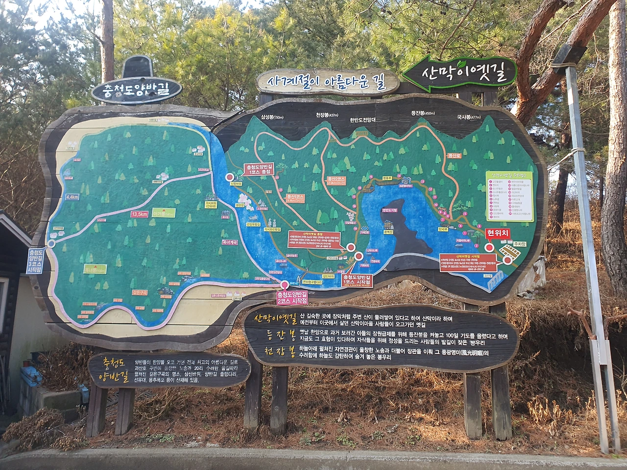 1950년대에 괴산댐을 만들게 되면서 생긴 괴산호를 왼쪽에 끼고 산막이옛길을 걷는 것은 꽤 좋은 경치를 즐길 수 있는 시간이었다. 한국관광 100선에 여러 번 올랐던 곳인 만큼, 경치에 대해서는 특별히 더 말할 필요는 없을 것 같고, 다만 겨울이라 아쉬움이 남아 초록이 우거질 때 한 번, 단풍 들었을 때 한 번 더 와보고 싶다는 생각이 들었을 정도였달까.