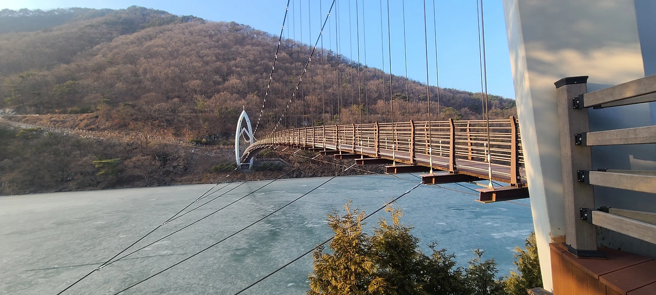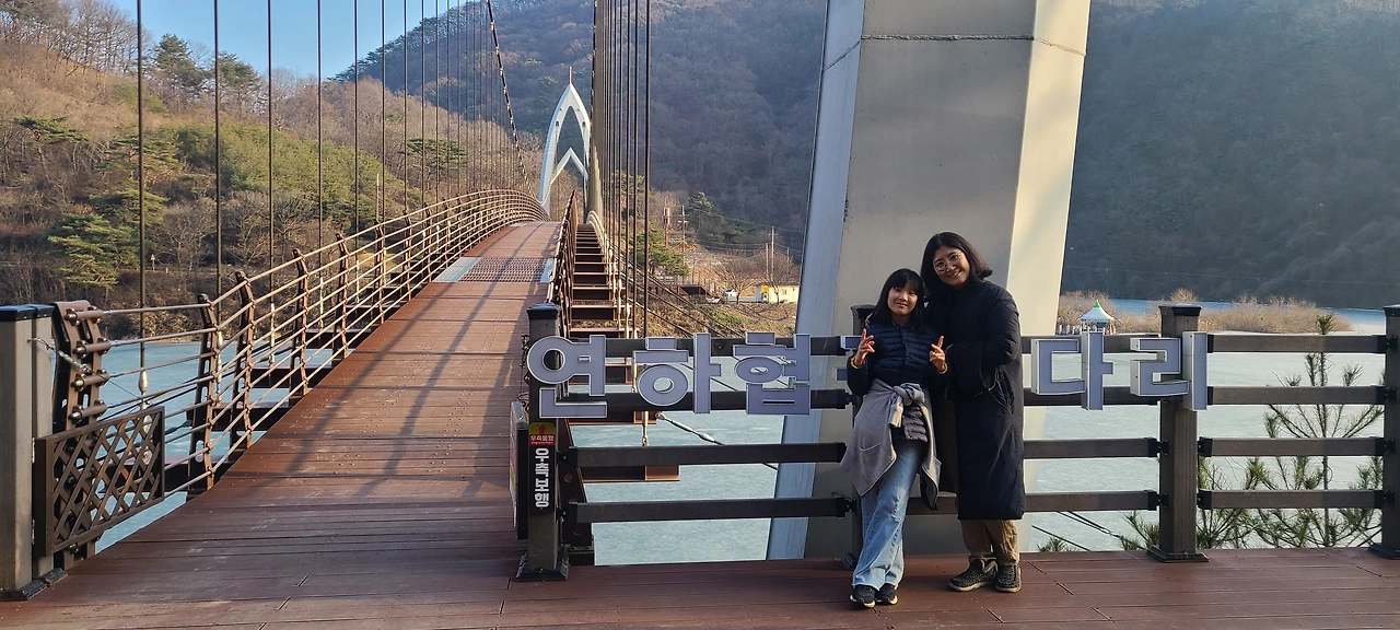 숙소는 정했으니 무엇을 할지 고민해야 했다. 그러다 퍼뜩, 우리 가족이 매주 일요일 저녁 루틴으로 시청하는 '1박 2일 괴산 편'이 떠올라 다시 뒤져보니, 산막이옛길을 걷고 유람선을 타는 멤버들을 보고 나중에 저기 꼭 가봐야겠다고 생각했던 게 기억이 났다. 그중에서도 고소공포증을 가진 김종민이 아래를 쳐다보지 못하고 냅다 걸어갔던 연하협 구름다리는 꼭 건너가 보고 싶었다.