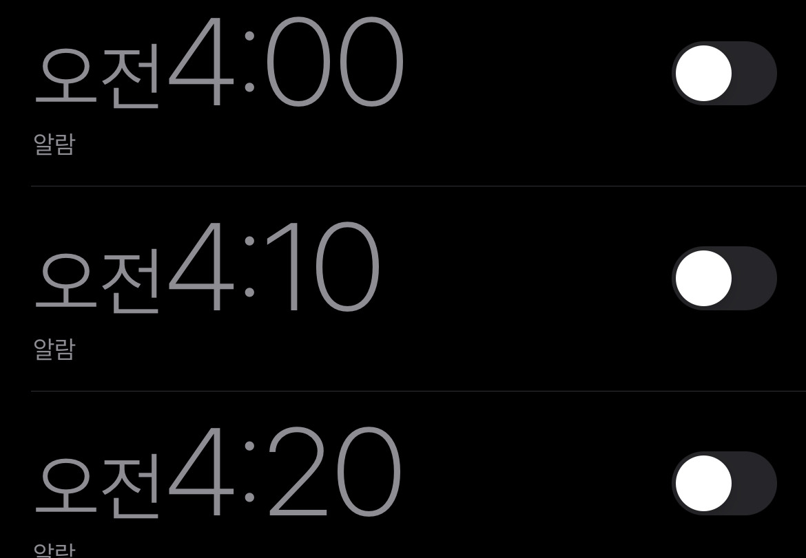 알람을 무시로 끄는 행위도 많이 줄어들었습니다. 전에는 4시 30분부터 울려대는 알람을 계속 끄며 잠에서 여전히 취하고 싶어 버티고 버티다 5시 30분에 간신히 일어났는데 이제 나는 4시부터 울리는 알람을 듣고 최소한 4시 30분에는 기지개를 펴고 이불 밖을 탈출할 수 있게 되었습니다.