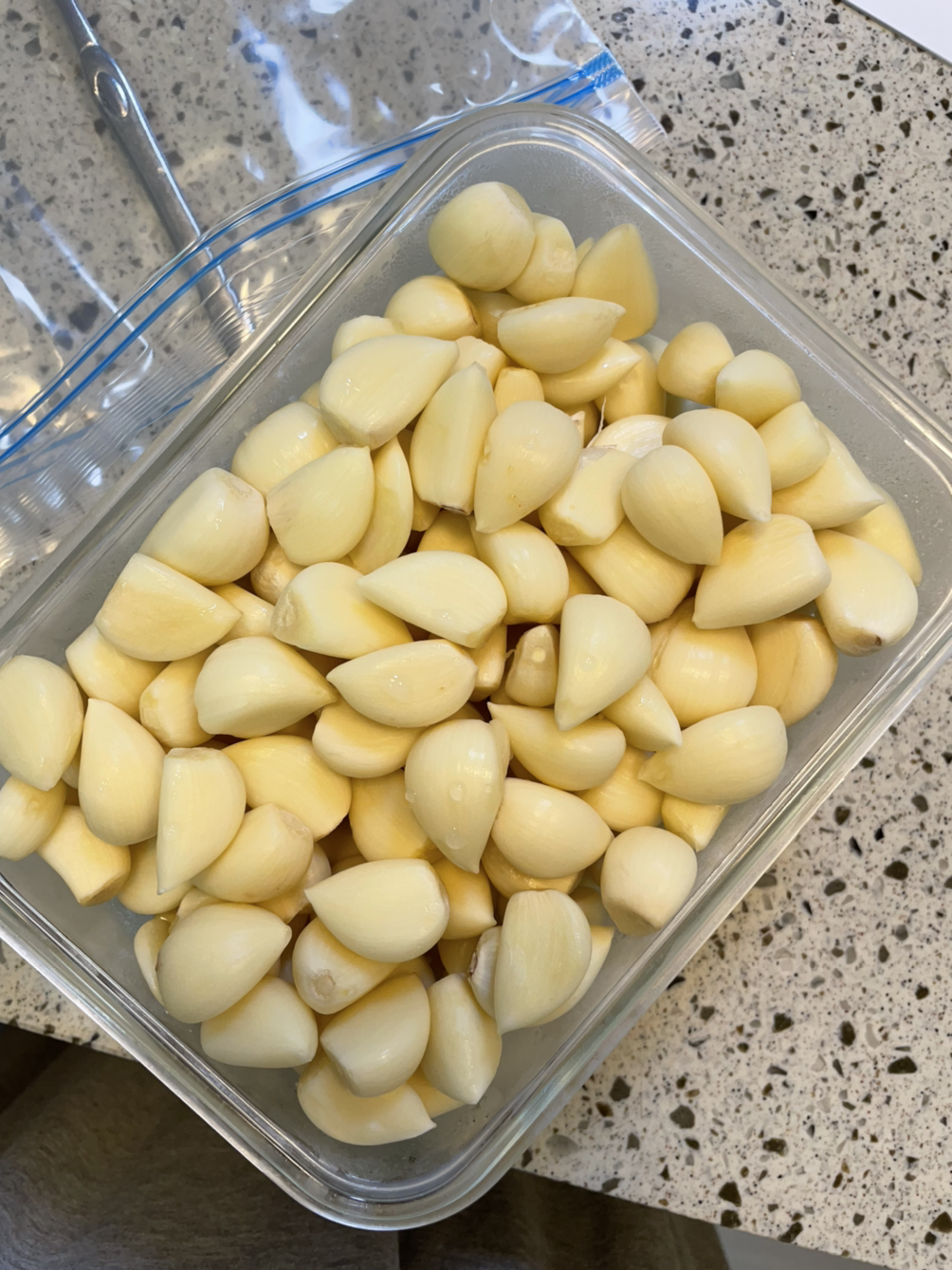 두 번째 받았을 때에는 실패한 경험이 있기에 혼자 쟁겨두지 않고 이웃과 나눠먹기 시작했다. 마침 딸 집을 방문했다가 내 소식을 듣고는 안타까운 마음으로 마늘을 까줄테니 다 가지고 오라고 해서 정말 구세주를 만난 마음으로 마늘을 품에 안고 감사한 마음과 죄송한 마음으로 헌 마늘을 드리고 뽀얀 속살을 드러낸 예쁜 새 마늘을 받아온 그때의 그 가뿐함은 뭔가 무거운 짐을 벗어던진 듯한 홀가분한 것이였다. 그때 나는 돌이 조금 지난 갓난쟁이 큰 아이를 키우고 있었다. 한참 육아전쟁을 시작한 초보엄마인데다, 마늘의 소중함과 귀한 것은 알았지만 생각보다 마늘을 풍성하게 넣고 각종 요리를 뚝딱 해내는 시간보다는 육아에 몰입해야 하는 시간이 많았고, 마음은 앞서지만 실력이 받쳐주지 않는 요리를 잘하지도 못하는 요린이였다. 그런 내가, 어린 돌쟁이 아가를 데리고 마늘을 까고 쟁이는 일은 생각보다 쉬운 일이 아니였다.