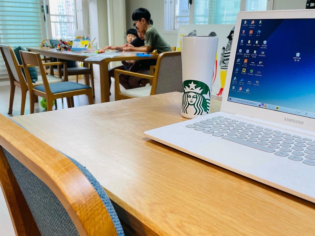 아이들이 있을 때 어쩔 수 없이 하게 되는 순간에는 핸드폰 보다는 컴퓨터를 이용하려고 또 노력한다. 손에 핸드폰을 들고 있는 엄마보다는 그래도 컴퓨터 앞에서 뭔가를 두드리고 있는 모습이 기왕이면 보기 좋지 않을까 싶어서이다.