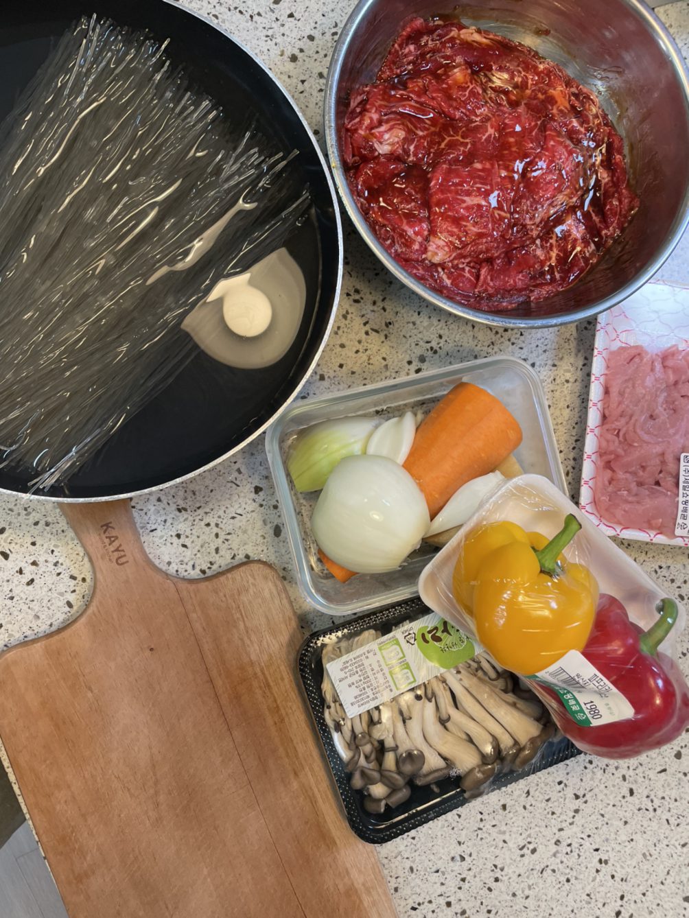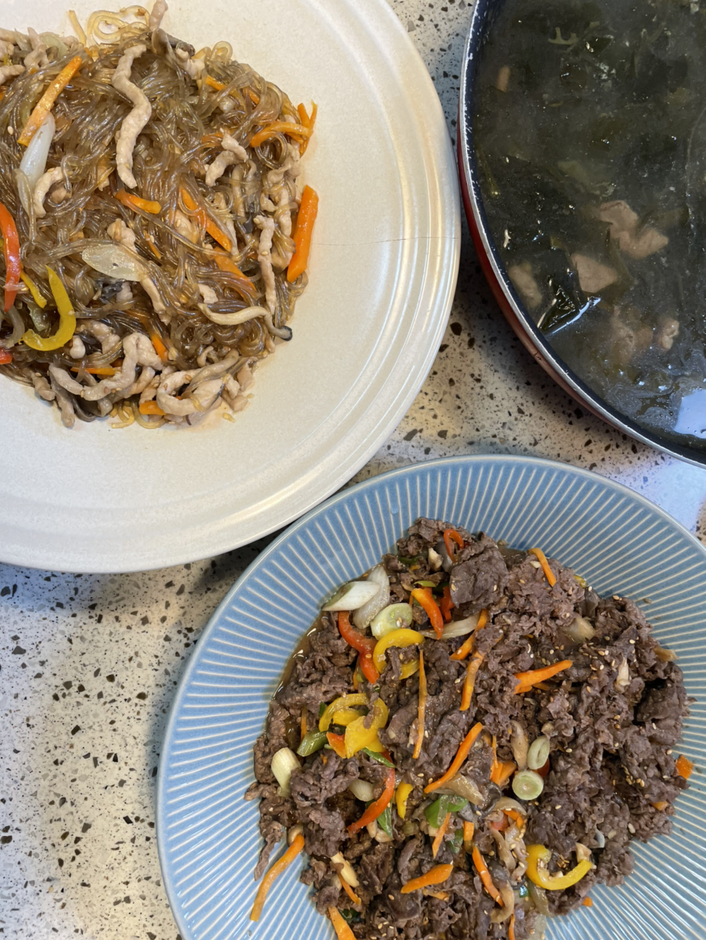 아이 생일이라고 손수 미역국에 소불고기와 잡채를 준비했다.