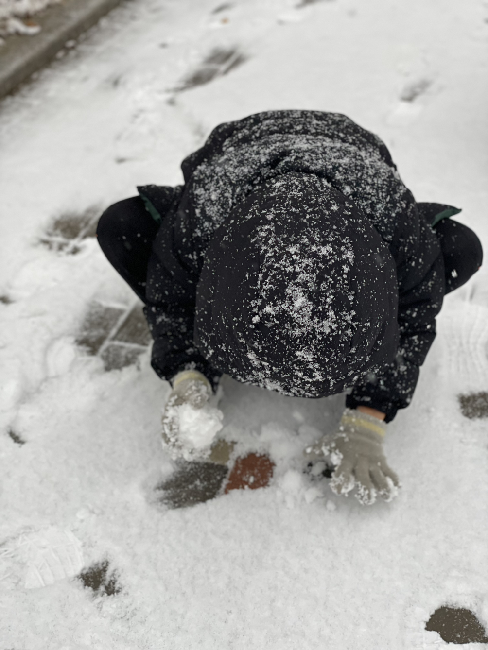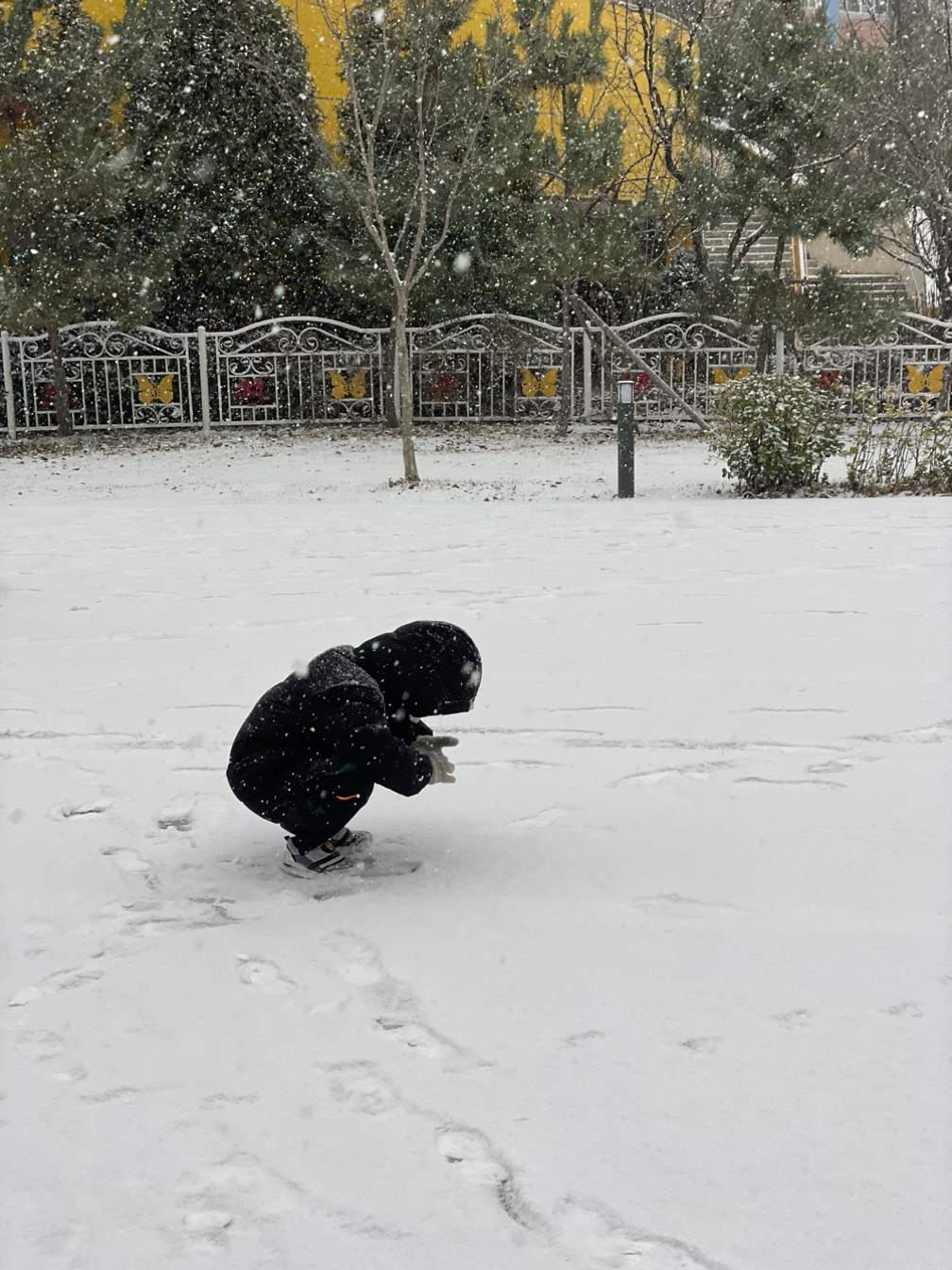 짧은 시간이라 크게 만들지는 못했지만 그냥 두고 가기 내심 아까운 아이의 마음이 발걸음을 재촉하지 못한다. 누가 망가뜨릴까봐, 녹아버릴까봐 걱정이 되는 아이는 아쉬움을 뒤로 하고 작은 눈덩이를 학교 앞에 두고 들어간다.
