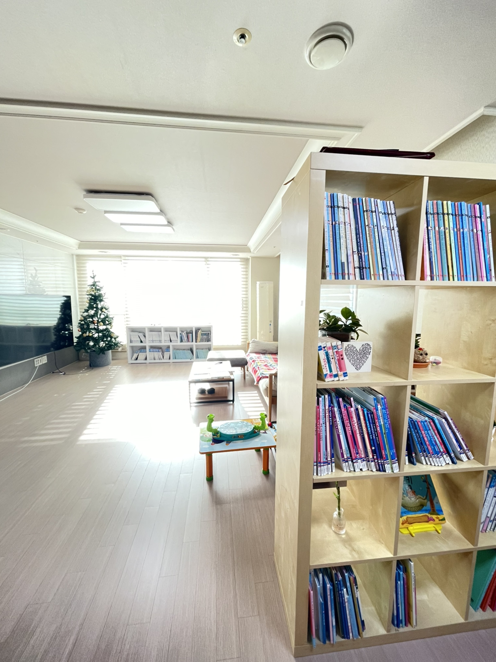 아이들이 거실에서 책을 더 많이 보고, 나도 전처럼 더 많이 읽어주려고 책을 거실로 의도적으로 뺐는데 내 안에 북카페의 꿈이 가득해서 인지 북카페처럼 꾸며졌고 아이들보다 내가 더 만족스러운 공간이 되었다.