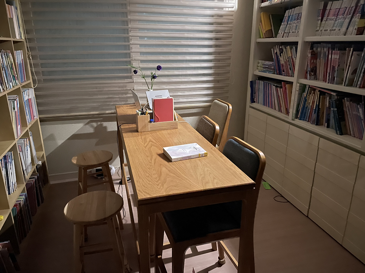 북카페를 꾸밀 작정은 아니었는데, 북카페의 꿈을 이루지 못한 아쉬움이 남았는지 북카페처럼 꾸며진 공간이 아늑하고 좋다. 이렇게 나는 북카페의 이루지 못한 꿈을 우리집 거실에서 이루었다고 위로했다. 당장 북카페를 할 수 없으니 여기가 북카페라 생각하고 더 계획하고 준비해야겠다는 생각이 들었다.