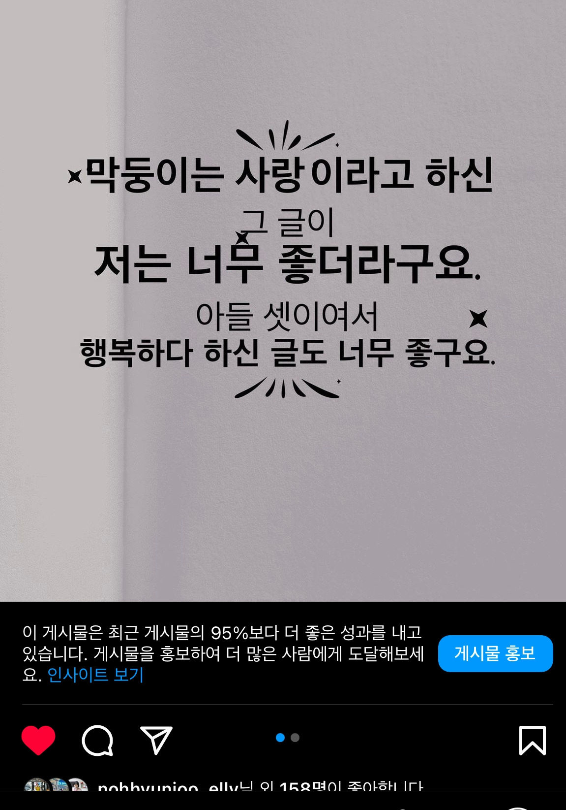 몇일 전, sns에 글을 올렸다. (매일 올리고 있다.)