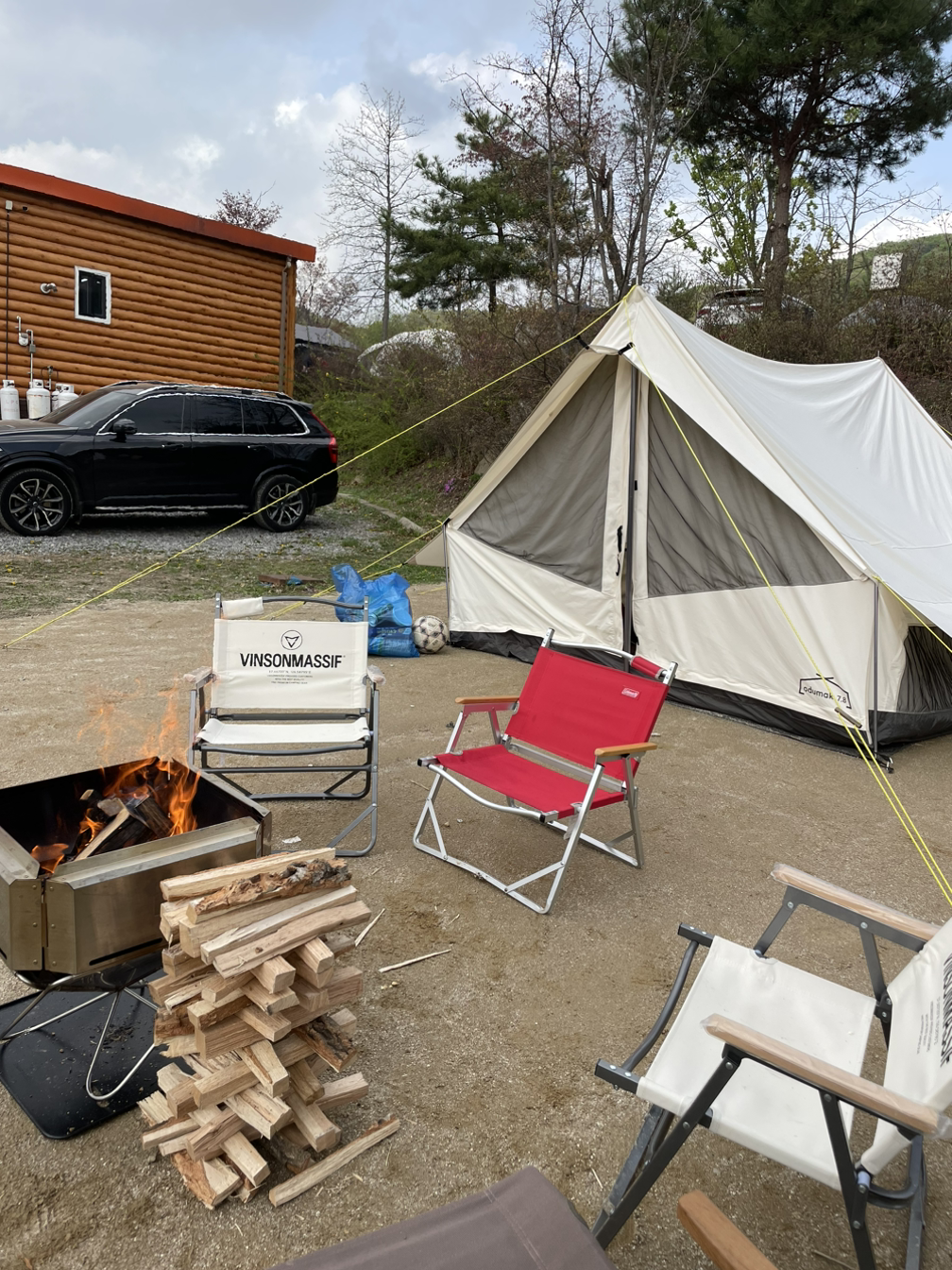 ‘그래도 불멍용 장작은 뭔가 달라도 다를텐데... 아버님은 어떤 나무를 준비해놓으신거지? 불이 잘 안붙어서 아이들이 기대하는 마시멜로우 불멍 타임을 못하게 되면 어떡하지? ’ 이유없는 불안감에 휩싸여 구매해둔 캠핑용 장작을 두고가는 것이 끝내 아쉬웠다