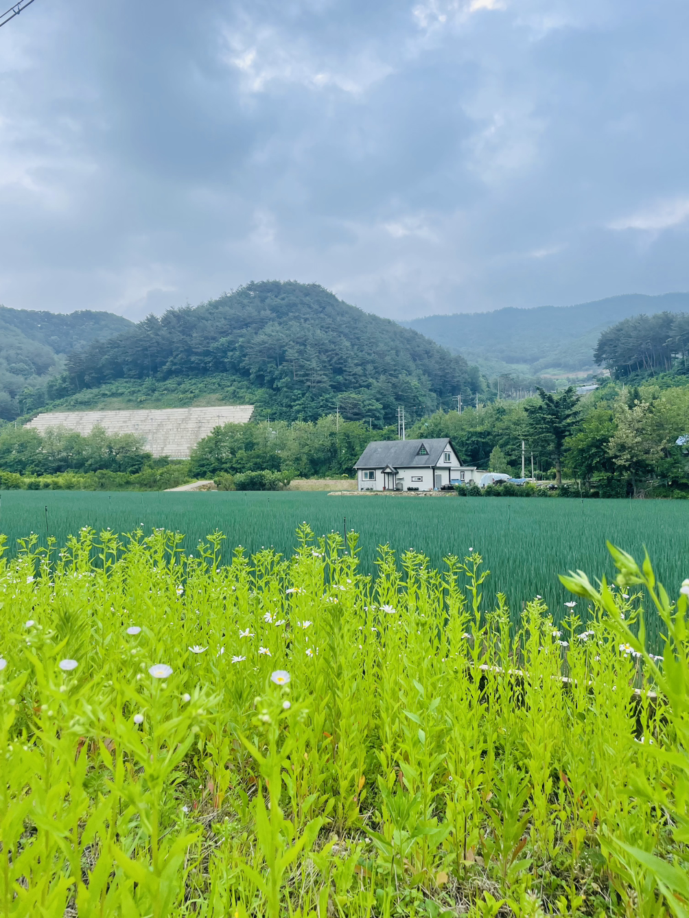 카페 앞 논밭보다 더 예쁜 뷰가 사방으로 펼쳐져 있다. 항상 걷던 길인데 이상하다. 오늘따라 너무 예쁘다. 파 밭이 이렇게 예쁠 일인가!?