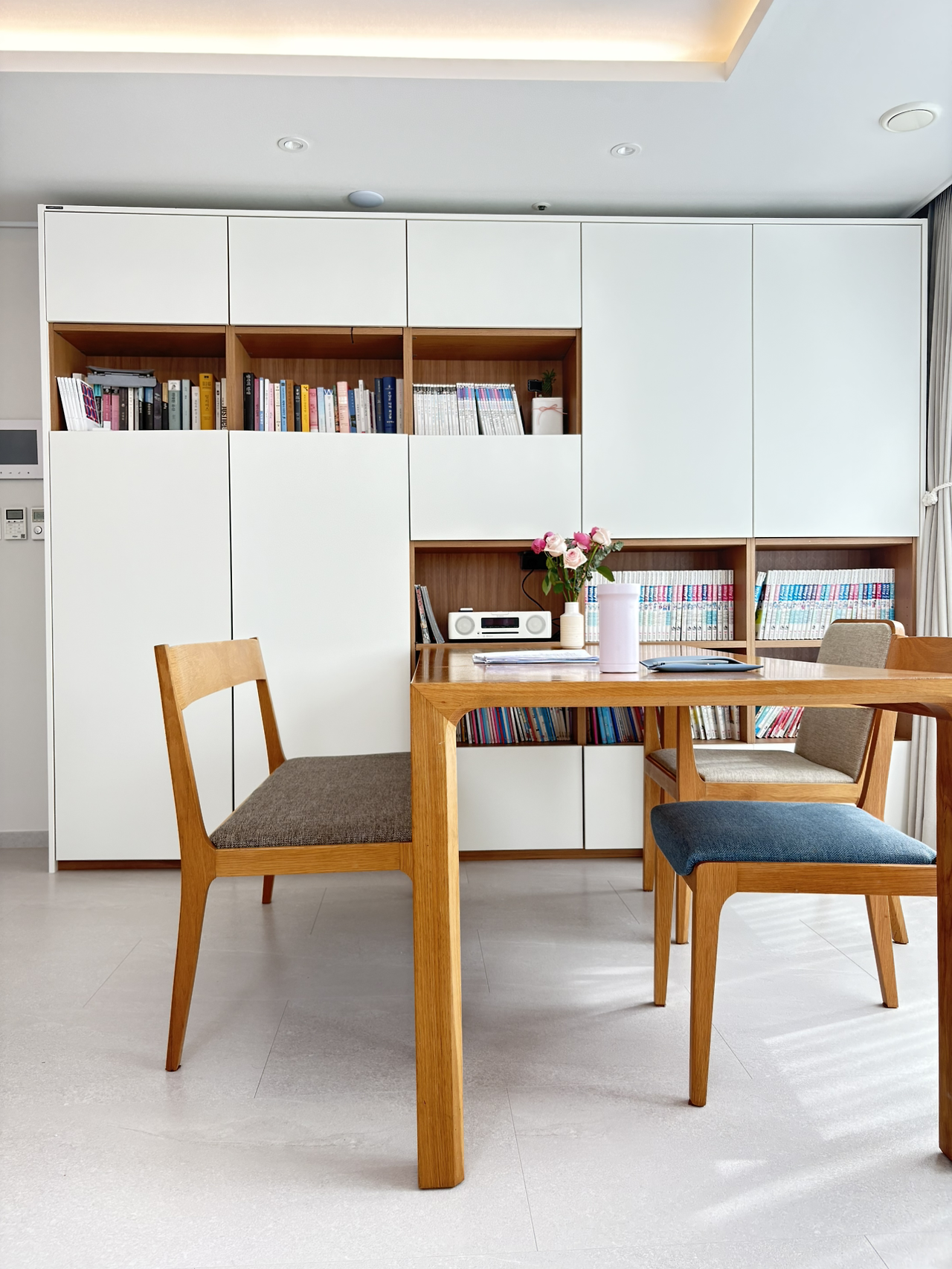 이런 내 모습을 보고 우리 가족들은 각기 다른 반응을 보인다. 아이들은 신이 나서 “와, 집이 바뀌었다!”라며 탐색하듯 새롭게 배치된 공간을 돌아다닌다. 반면, 남편은 어느 순간부터 절래절래 고개를 저으며 더 이상 아무 말도 하지 않는다. 이미 여러 번 겪은 일이라서다. 하지만 나는 달라진 공간에서 다시금 설렘을 느낀다. 가구 하나를 옮겼을 뿐인데도 내 마음이 새로워지고, 글을 쓰는 자리도 더 생동감 있어진다. 꼭 도서관에 가지 않아도, 내 작은 공간이 나만의 창작 공간이 되는 순간이다.