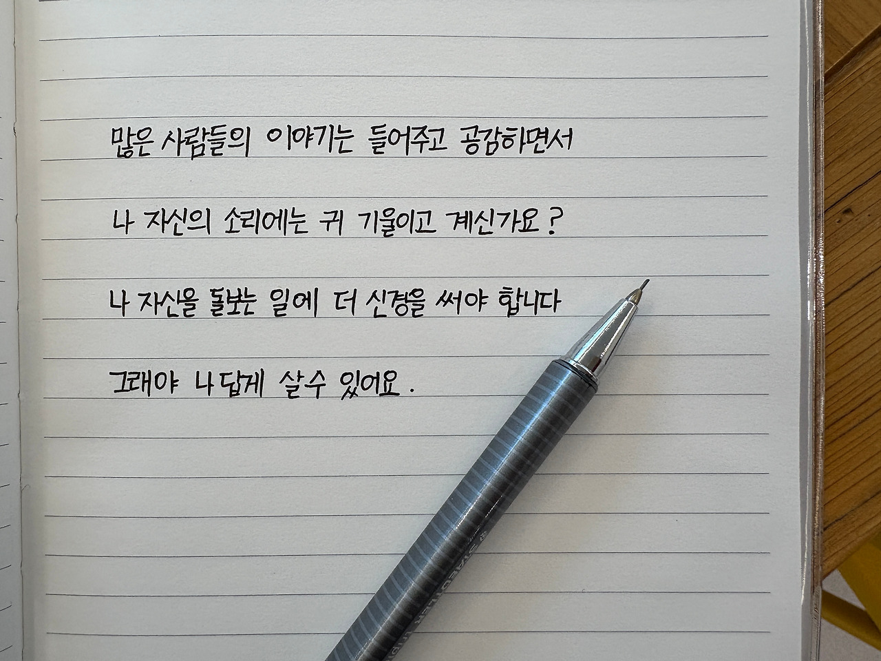 온종일 다른 사람들 이야기만 들어주고 다른 사람의 모습만 보고 산다. 나를 잘 알고 있다고 생각하지만 사실 가장 잘 모르는 것이 나자신이다. 애써 외면하고 부인하기 쉬운 것이 바로 나 자신이다.