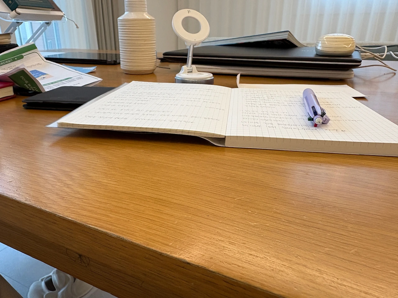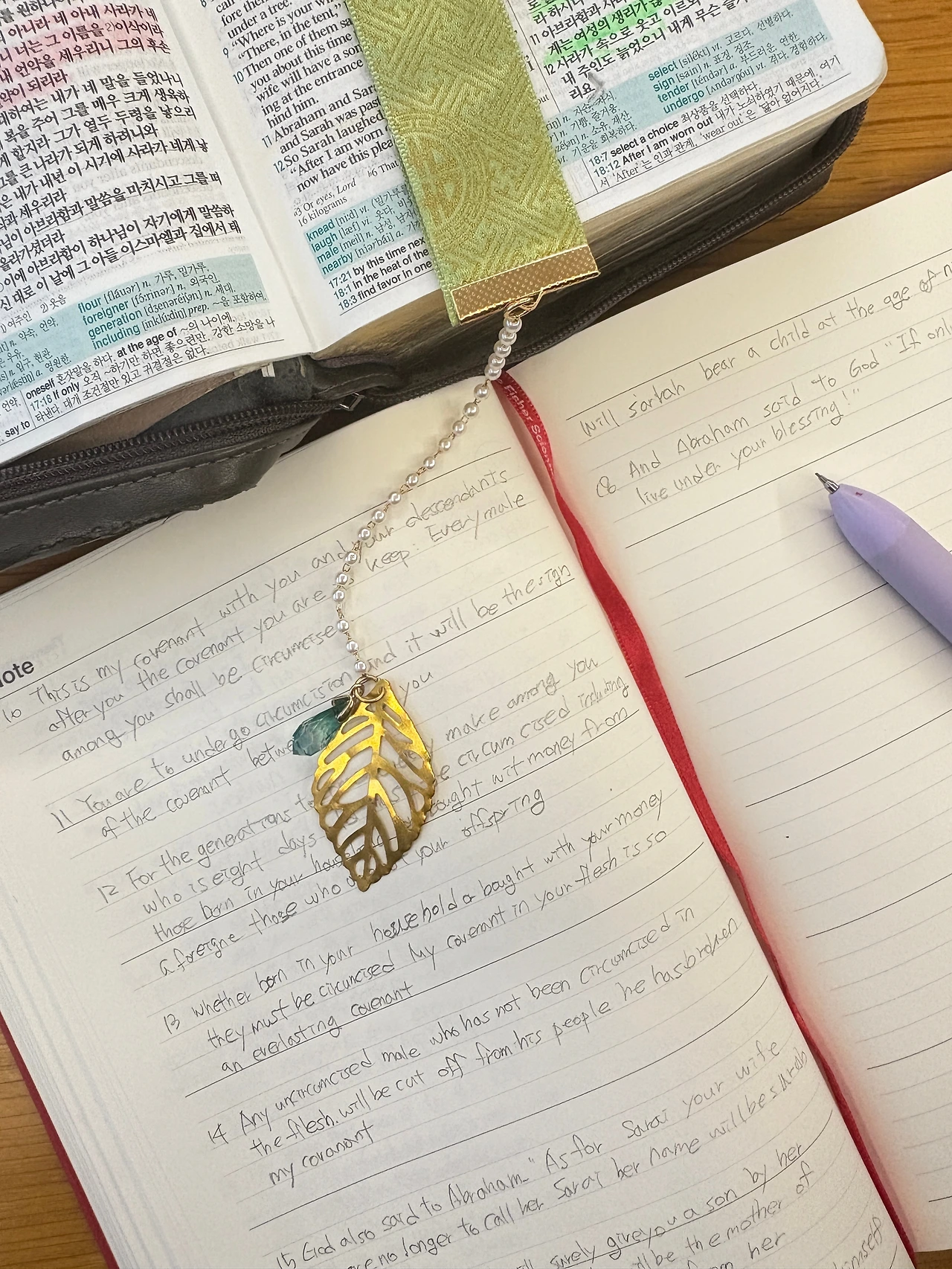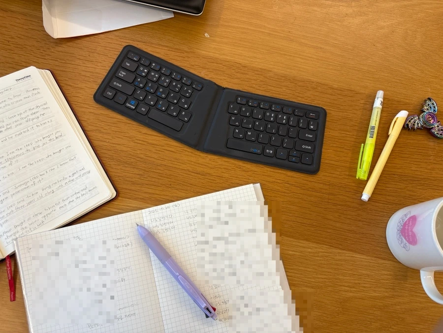 집 안의 공기도 아직 잠에서 덜 깬 듯 고요함이 참 좋다. 짧게 기도를 하고 나는 펜을 들어 영어성경을 필사한다. 단어 하나, 문장 하나를 천천히 옮기다 보면 영어 공부를 하는 것 같으면서도 묵상을 하고 있는 나를 발견하곤 한다. ‘하나님의 말씀’이라는 문장을 따라 쓰는 동안 문법보다 마음이 먼저 다듬어지고,언어보다 믿음이 조금 더 깊어지는 시간이 되어준다. 영어라는 낯선 언어들이 새롭게 다가오고 계속해서 쓰다보니 어쩐지 익숙해진다. 어쩐지 영어에 눈이 밝아지는 것 같은 기분도 참 좋다. 무엇보다 무언가 쓰고 있는 시간이 참 좋다. 요즘은 샤프를 쓰고 있는데 사각사각 소리를 내며 내 손 위에서 거침없이 영어로 노트한 바닥을 채워나가는 묘한 쾌감도 있다. 10분이면 노트 한 바닥을 채울 수 있다. 채워나가는 분량도 점점 많아지기 재미있기만 하다.
