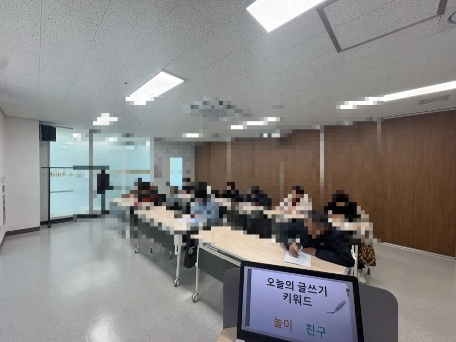 그리고 워크지를 펼쳐드렸다. 막막한 백지 대신, 기억을 따라갈 수 있는 작은 길을 만들어드리고 싶었다. 글쓰기는 어렵지 않다. 다만 시작이 어려울 뿐이다. 그래서 나는 늘,‘ 쓸 수 있는 환경’을 만들어주는 일부터 시작한다.