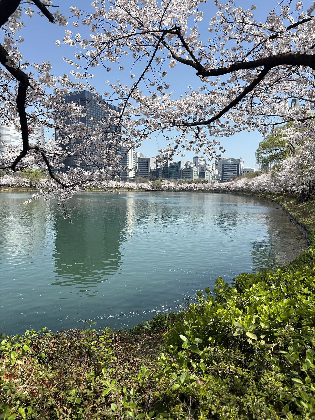소문으로만 듣던. 사진으로만 보던 아름다운 벚꽃의 자태들을 보고 있자니 오길 잘했다는 생각이 든다. 벚꽃과 호수가 화려한 도시를 품고 반짝인다. 어쩐지 다른 벚꽃들보다 세련되고 위풍당당해보인다. 시간만 많이 있다면 샌드위치 한입 베어물고 벤치에 자리잡고 앉아 책 한권 꺼내 읽고 싶다. 글을 써도 좋겠다. 그런 로망을 가지고 찾아온 석촌호수공원에는 생각보다 사람도 너무 많았고 내가 원했던 여유를 부리기엔 시간도 부족했다. 그래. 벚꽃이나 실컷 보다 가자. 그 크고 넓은 호수공원을 두 바퀴를 사람따라 돌고나니 다리가 묵직하게 아파온다. 나처럼 혼자 온 사람들도 있었지만 대개는 연인. 가족. 친구가 함께 였다. 아니, 어쩐지 걷다보니 나만 혼자라는 느낌도 들었다. 벚꽃을 품고 있는 아름다운 서로의 모습을 찍어주느라 바쁜 사람들의 모습만 눈에 들어온다. 그 순간 ‘다음주에 함께 가준다던 남편의 말도 떠올랐다’ 쿨하게 ’괜찮아. 그냥 보고만 올거야’ 했지만 그냥 보고만 오려니 어쩐지 서운했다. 나도 다시 오지 않을 2025년의 내 모습을 벚꽃과 함께 담았어야 했는데...