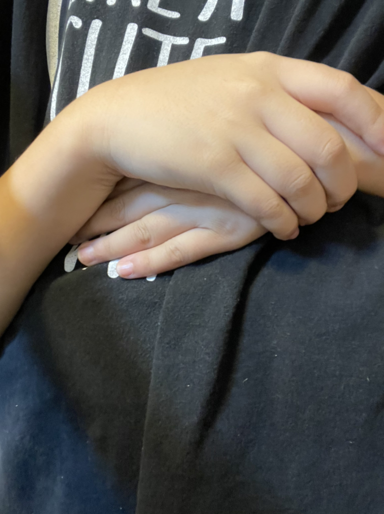 '막내한테 설명해주고 나도 기분을 좀 풀어볼걸 그랬나, 너무 무정했나...' 싶어 후회가 살짝 밀려오려던 순간에, 뒤에서 작은 손이 제 허리를 스리슬쩍 감싸 안더라고요. 방금 왔었던 막내의 손일 거라고 생각했는데, 깜짝 놀라 확인해보니 우리 둘째 아이의 손이 제 허리를 감싸고 있습니다. 뒤에서 제 허리를 꼭 끌어안고 엄마를 백허그해주며 둘째 아이는 아무 말도 하지 않아요. 그저 꼭 안고 있을 뿐 입니다. 그 짧은 순간, 늘 깊은 배려와 사랑으로 엄마를 놀라게 하는 심성 착하고 세심한 둘째 아이의 성품이 떠올라 아이가 제 허리를 감싸 안은 그 손에 제 손을 덮어 꼭 안아주었습니다. 그리고 아이를 꼭 안아주었어요. 그제야 쉽게 풀리지 않았던 화가 눈 녹듯이 사르르 녹아내리며 마음이 편안해집니다.