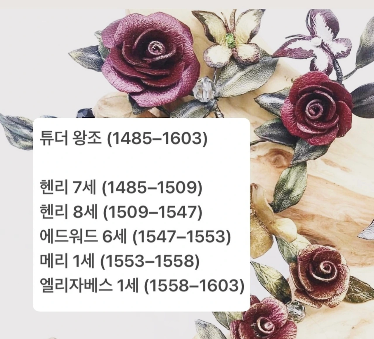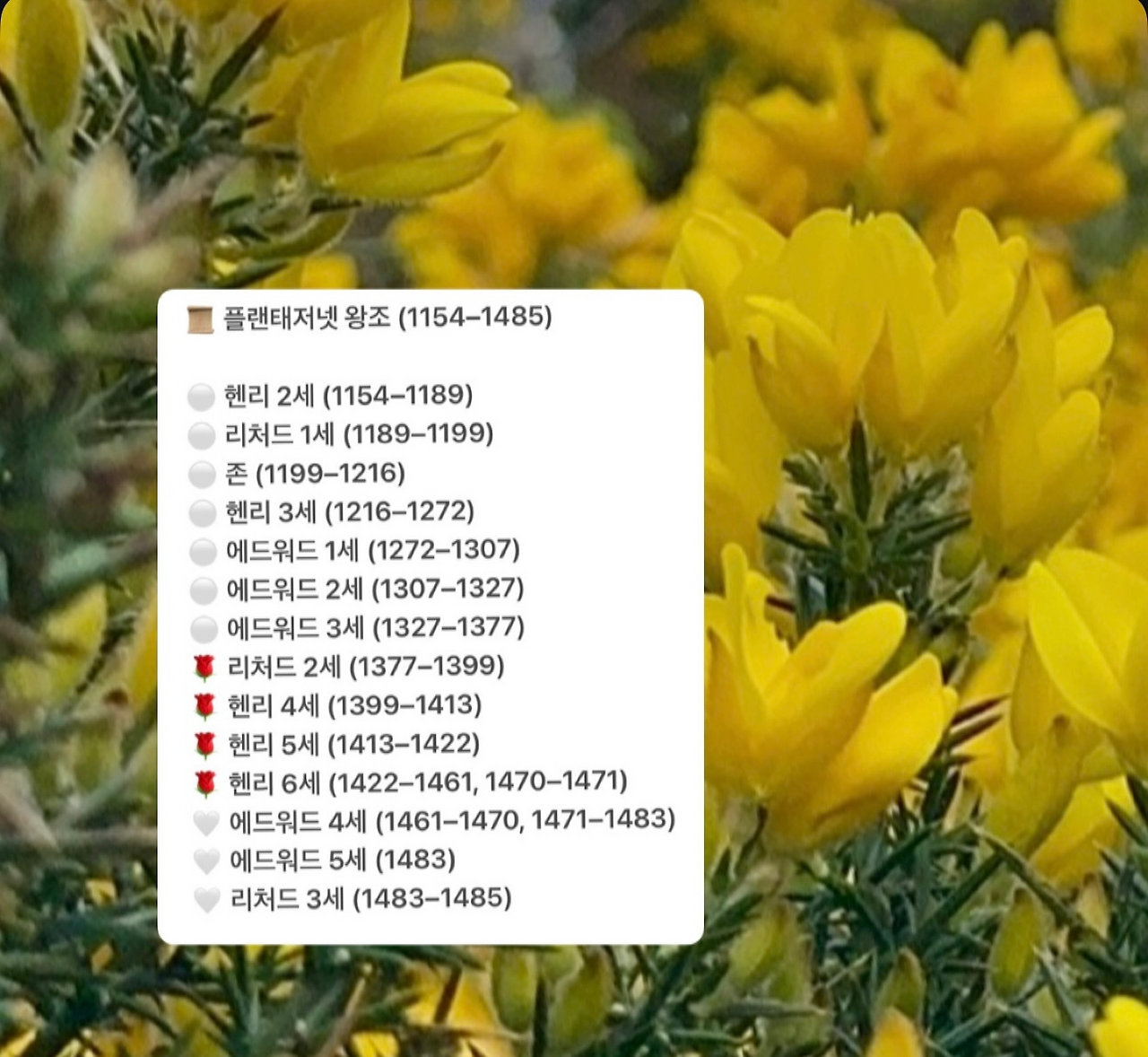 좌:플랜태저넷 왕조 (1154–1485) , 금계국(planta genista) 우: 튜더 왕조 (1485–1603) , 튜더 장미(Tudor Rose)