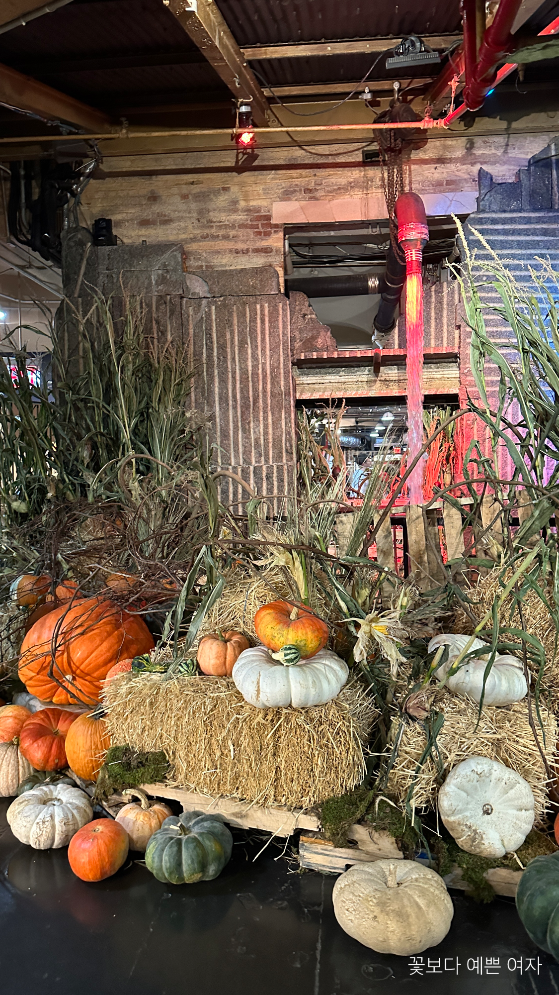 10월의 첼시마켓은 언제나 활기차다. 통로에는 거미줄과 호박이 걸리고, 매장 입구마다 해골 모형과 조명이 달린다.